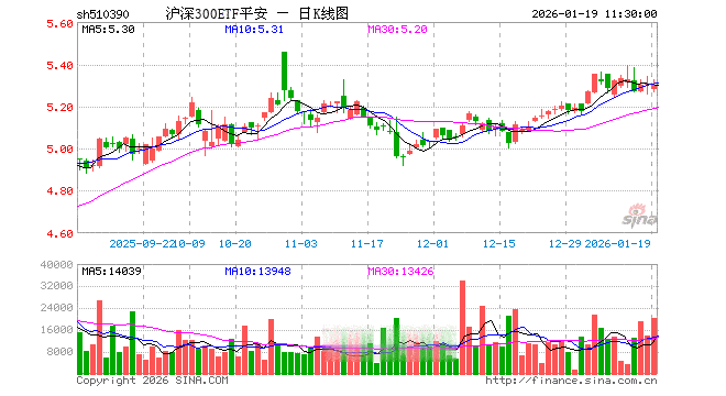 1月19日,截止午间收盘,沪深300ETF平安(510390)跌0.17%,报5.298元,成交额1083.83万元。沪深300ETF平安(510390)重仓股方面,宁德时代截止午盘跌1.42%,贵州茅台跌0.28%,中国平安跌0.56%,招商银行跌0.21%,紫金矿业跌0.88%,新易盛涨1.44%,中际旭创跌1.78%,美的集团涨0.06%,东方财富跌1.59%,长江电力涨0.83%。
