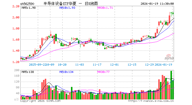 1月19日,截止午间收盘,半导体设备ETF华夏(562590)跌0.44%,报2.058元,成交额2.67亿元。半导体设备ETF华夏(562590)重仓股方面,中微公司截止午盘涨1.62%,北方华创涨0.02%,长川科技跌1.01%,沪硅产业跌1.21%,华海清科跌0.83%,拓荆科技跌2.22%,南大光电涨0.03%,安集科技跌3.06%,中科飞测涨0.43%,芯源微涨2.52%。