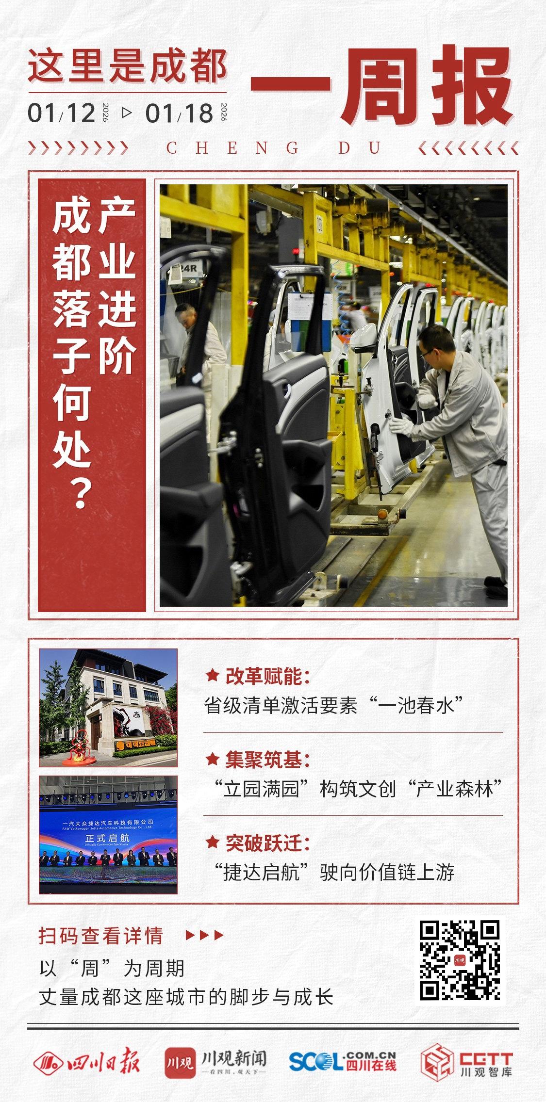 上周是2026年第三周,时间为1月12日至1月18日。新年伊始,成都产业发展动作呈现出“改革、集聚、突破”三条清晰的脉络。
