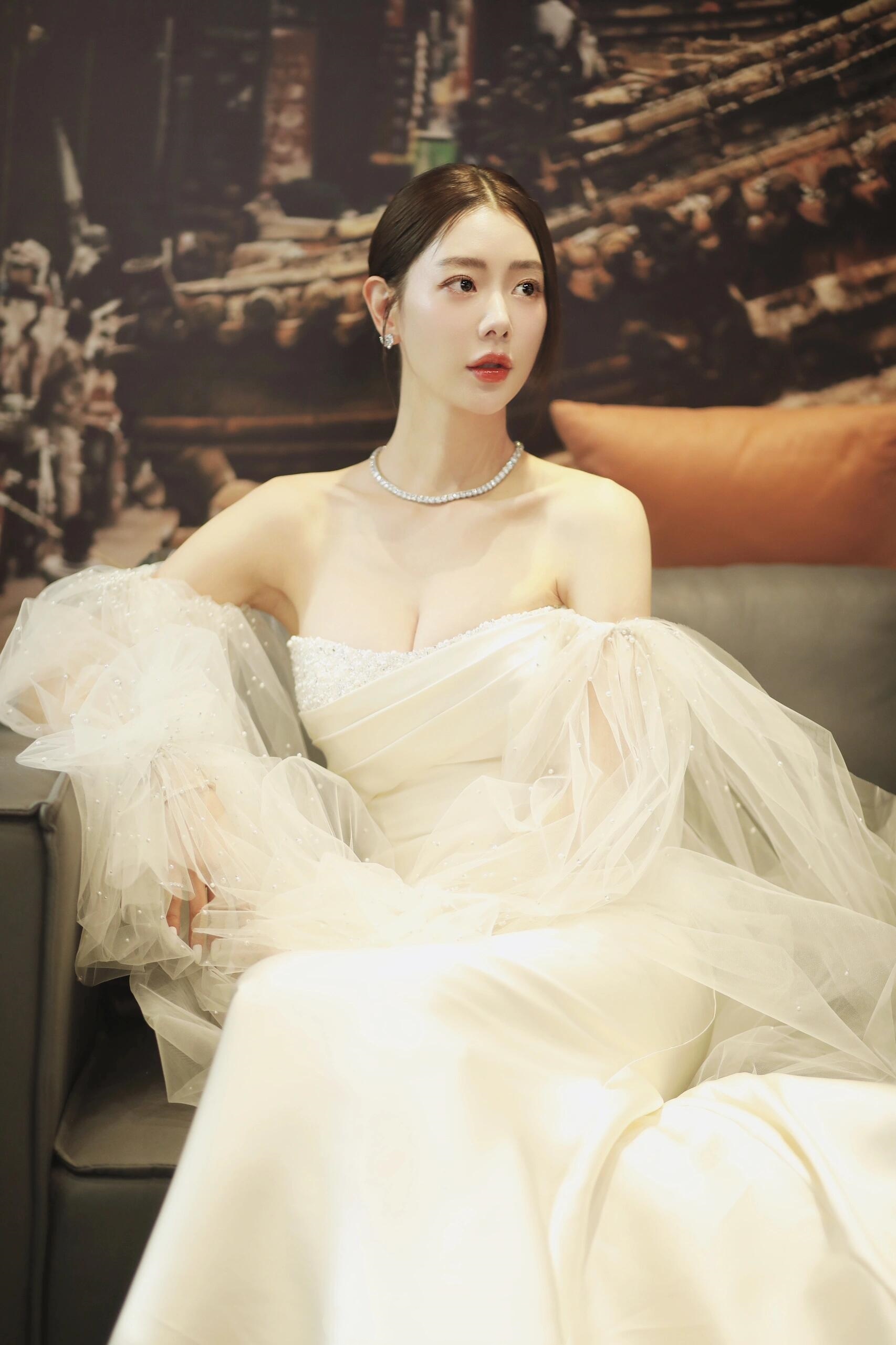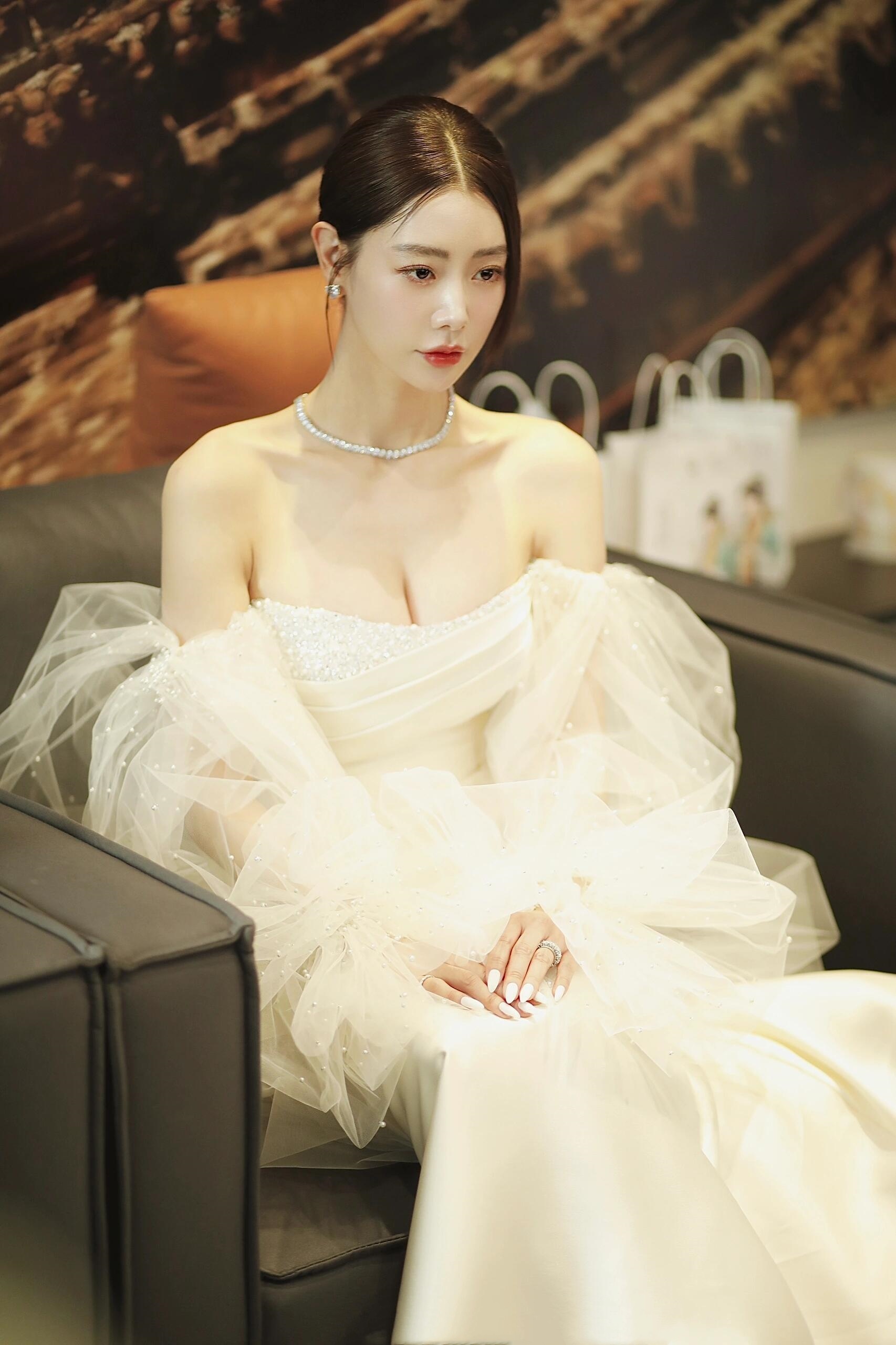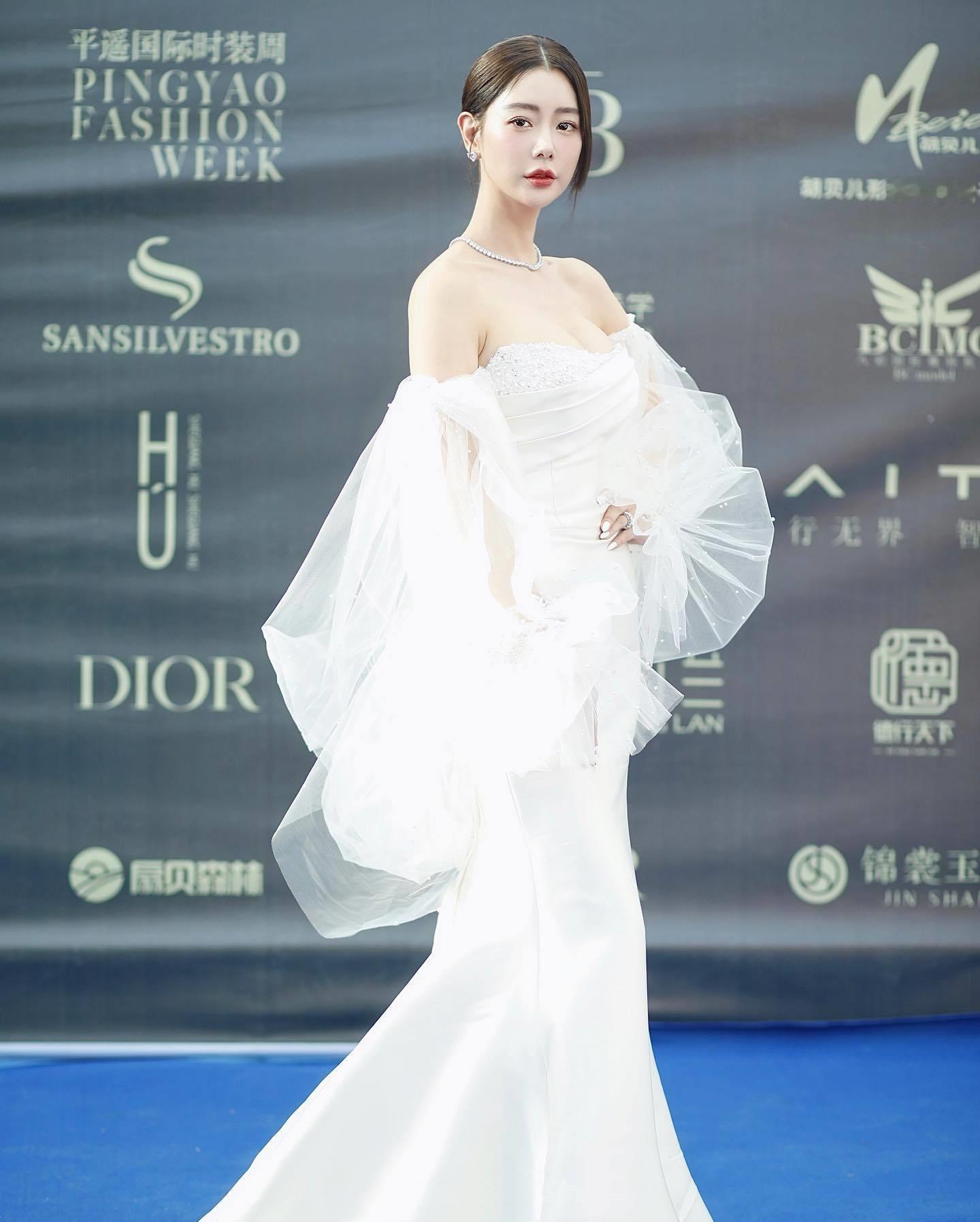 万茜,白裙妆造,清冷酷美。