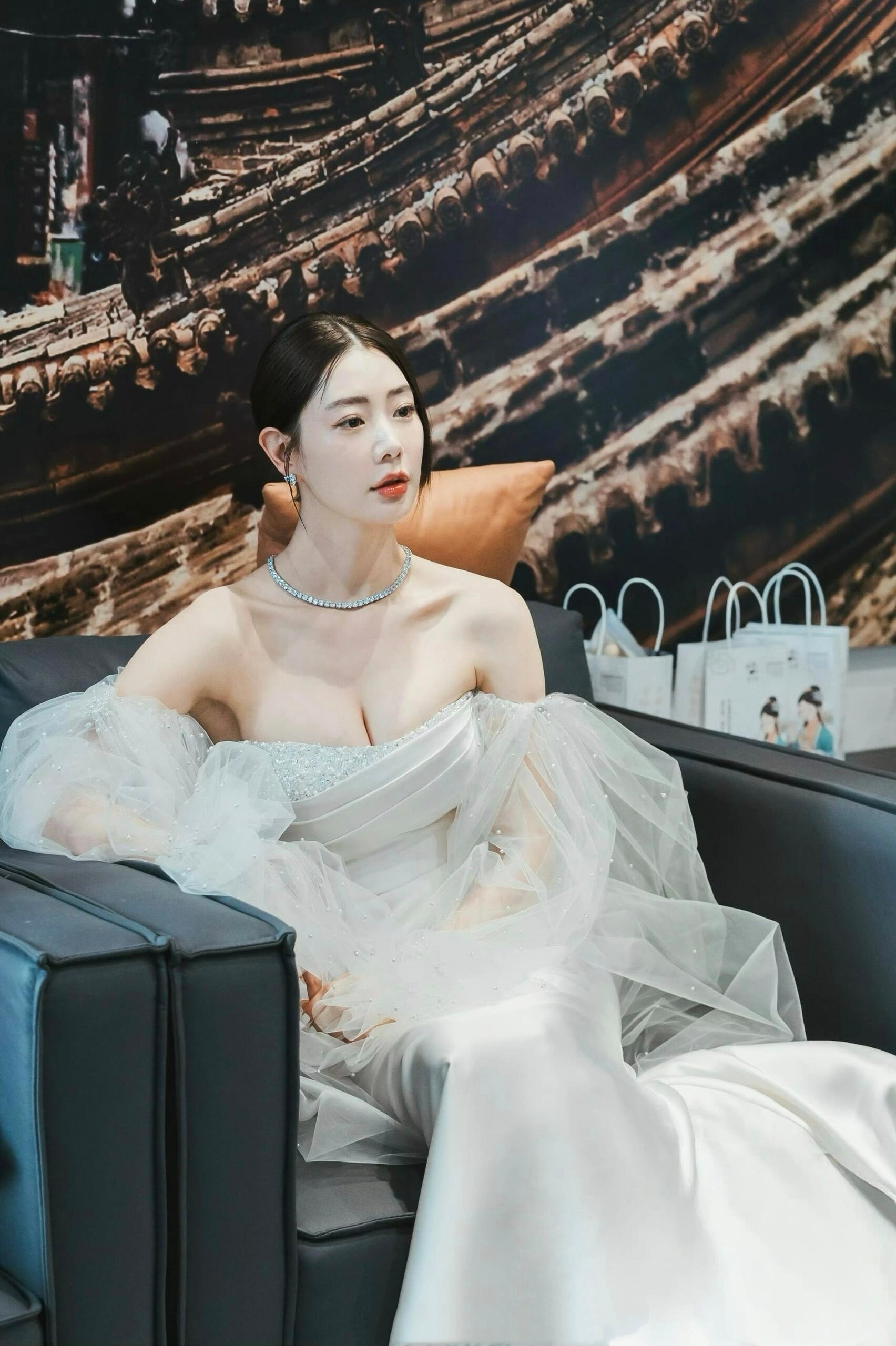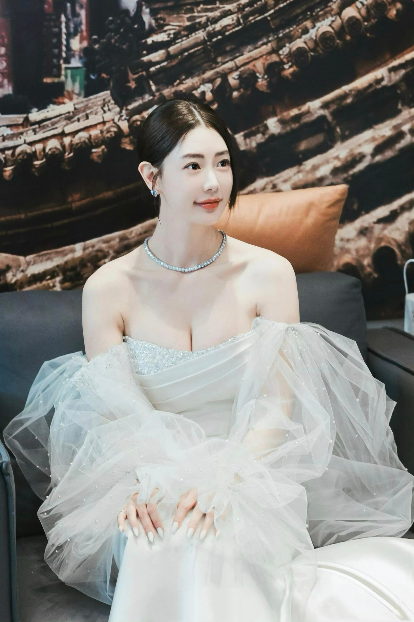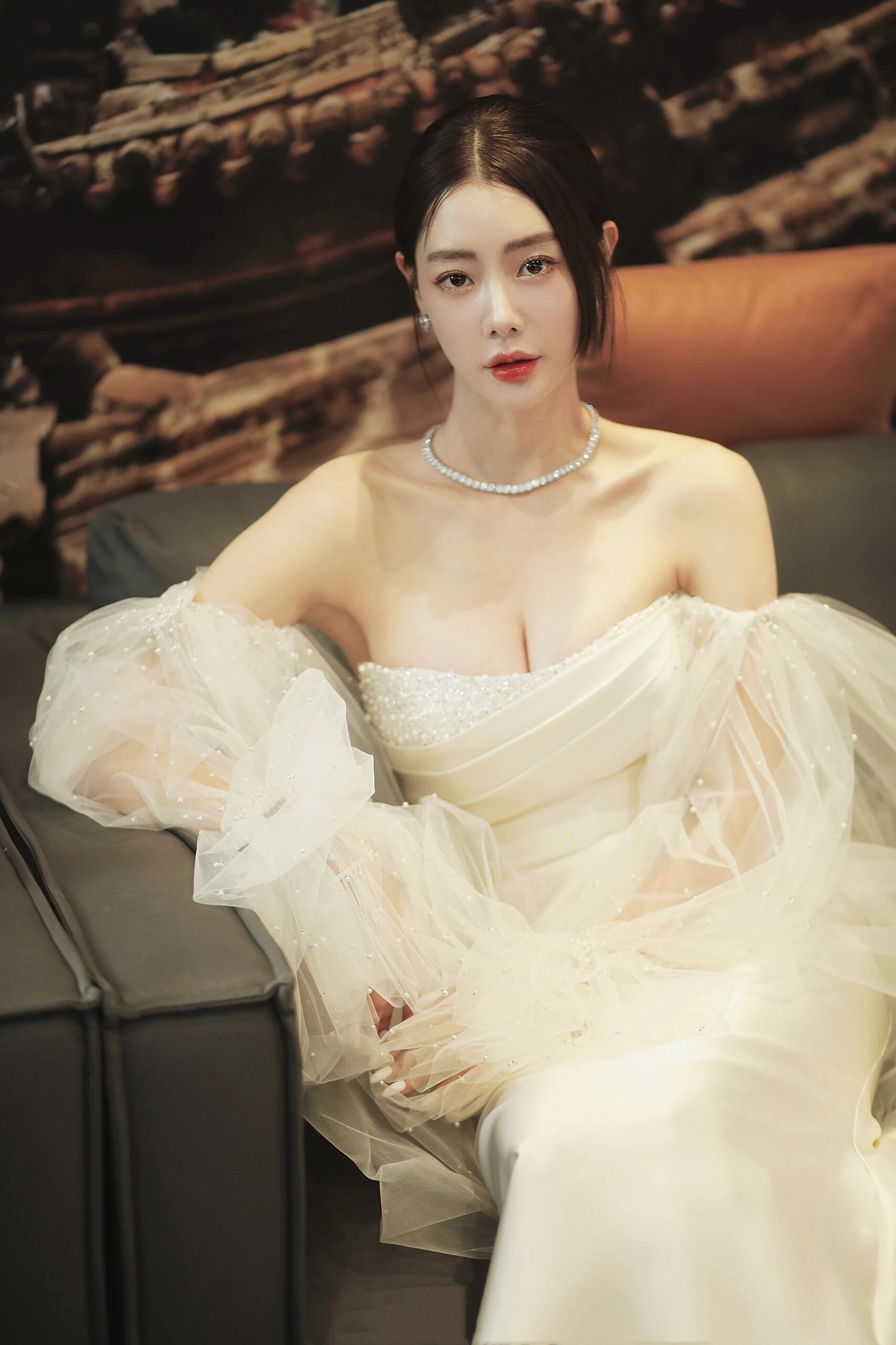 万茜,白裙妆造,清冷酷美。