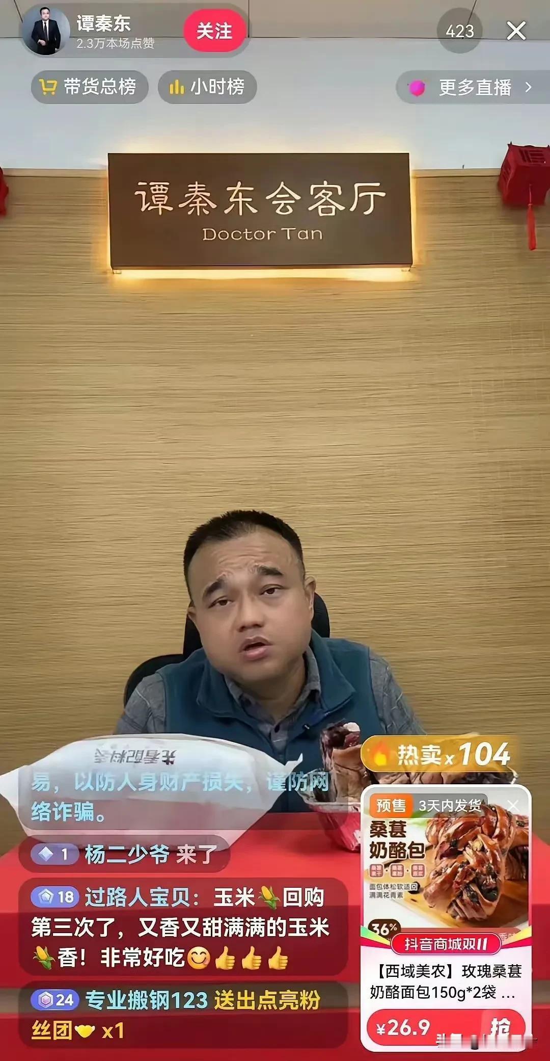 “如果换了别人,可能早就被谭秦东了”,罗永浩和西贝贾国龙的对战,意外又把谭秦东医生重新拉回视野,虽然罗永浩这句话很明显是在消费谭医生,但是谭医生很大度的在直播时感谢了罗永浩,表示因为罗永浩,他直播间的流量比以前明显有了提升。 谭医生2010年毕业于中南大学麻醉学硕士,2015年自主创业创办医药公司,2018年因为在文章中把红茅药酒形容为D药陷入风口浪尖,虽然很快脱身但是因为压力过大而精神不佳。 后来谭医生得了尿毒症,因为需要治疗不得不医生岗位,期间女儿得了ADHD,失业导致父女两人的医药费难以为继,于是谭医生为了治病开始直播带货,很多人因为同情他都会去支持他下几单。虽然罗永浩自比谭医生,但如果罗永浩遇到谭医生那种经历,未必能有谭医生那么坚强,因为东贝可没有药酒公司那种通吃的能力!