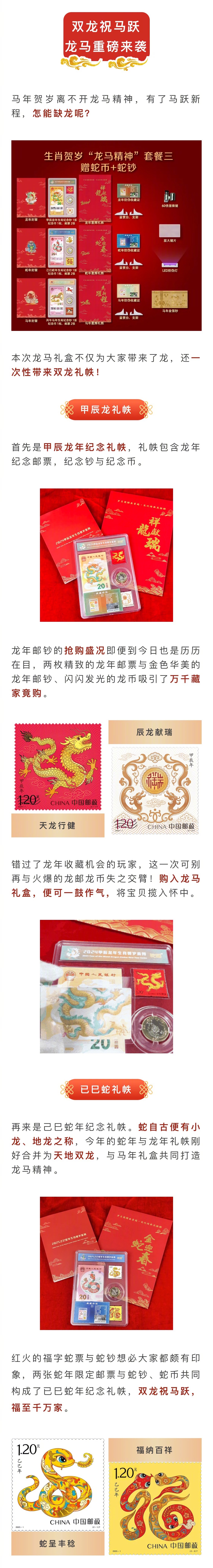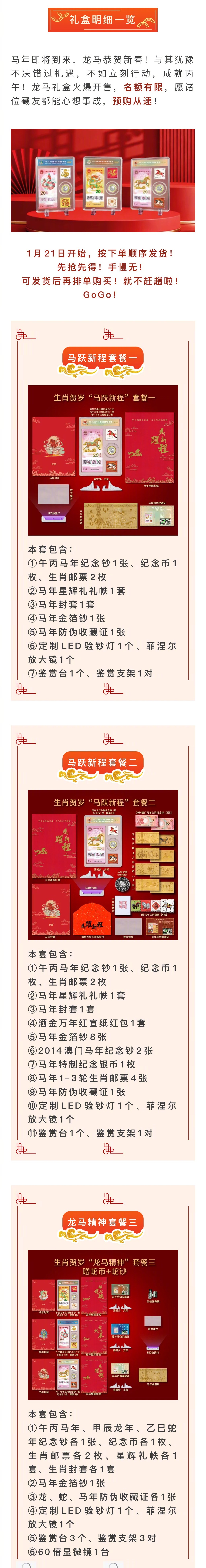 每年发行的生肖纪念钞是真的难抢,我们提前给大家安排好了!马年纪念钞纪念币➕马年邮票直接一步到位,不用排队,不用抢购,官方正品,省时省心,还有多样礼品赠送!还没完,前两年没有收藏到纪念钞的这次可以直接补上!还安排了一款“龙马精神”套餐,龙年蛇年马年一包在内,送人收藏都特合适!心动的宝子抓紧入,按单发货,先到先得,在家坐等收货~