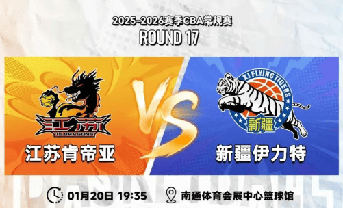 虎扑01月19日讯据江苏男篮官方发文,1月20日19:35,2025-26赛季CBA常规赛第十七轮,江苏肯帝亚将迎来转战南通赛区的首场比赛,再战新疆伊力特。