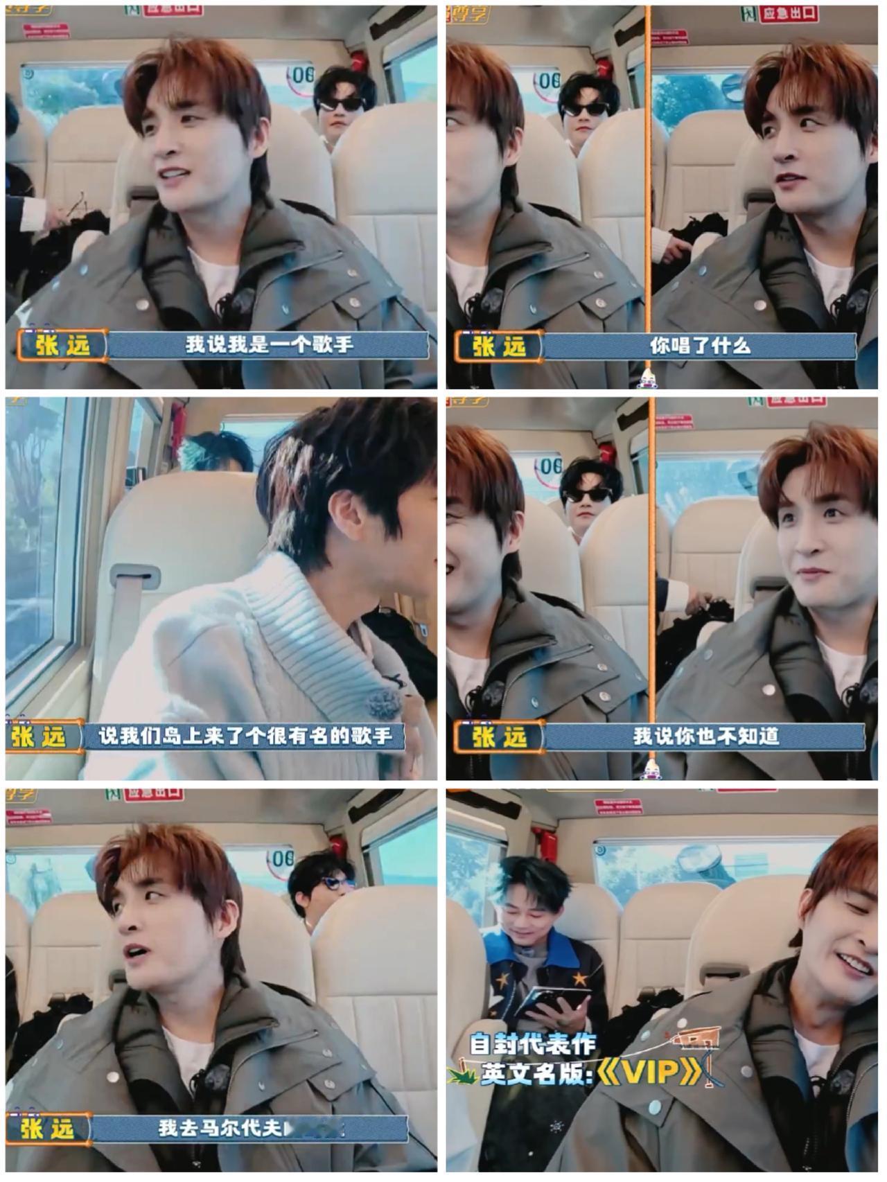 陆虎,张远车内聊天, 谈及办签证的经历, 陆虎满是嘚瑟,而张远 满是无奈。 陆虎想去看NBA, 于是就去办理漂亮国的签证, 他把办签证的资料 第一张就是他的春晚表演照片, 于是在春晚的“背书”下, 他的签证就秒过了。 而张远办签证, 他跟签证官说他是歌手, 但是追问他唱了什么歌, 他很有自知之明, 强调就算他说了, 对方也不知道。 张远去到马尔代夫, 有人问他代表作是什么, 他又表达不清楚。 其他兄弟就立马想到一个好主意, 下次外国人问他的代表作就说“VIP”, 他们把张远的《嘉宾》翻译为VIP. 这个翻译十分搞笑, 英文就是无法完全表达 中文里浪漫与情感。 中文才能完整表达独属于 中国人的情感色彩。