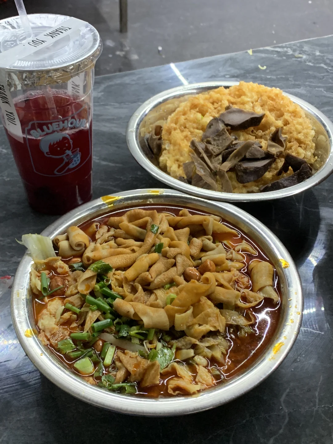 钉螺鸭脚煲和干锅大肠煲都好好吃!