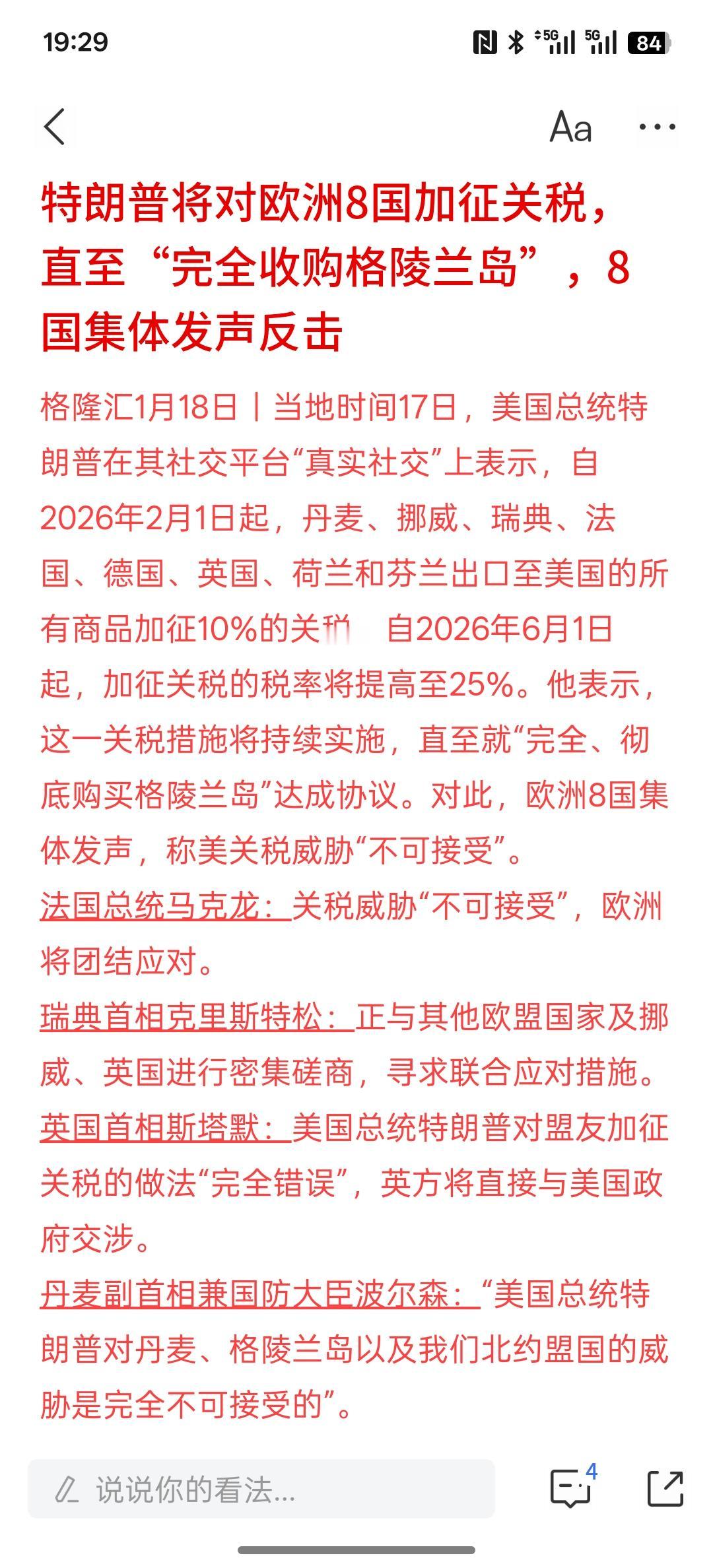 欧美又干起来了,欧盟多国考虑对930亿欧元输欧美国商品加征关税!欧洲对美国要增加关税!特朗普因为格陵兰岛的问题对欧洲要增加关税,由原来的10%提到25%!就是让美国购买格林兰岛过后才能考虑降关税的问题!现在欧洲方面也做出了反应!那欧美之间短期内可能因为关税问题爆发一些问题,那这样也有助于中国和欧美的合作! 现在因为格陵兰岛的问题,美国与欧洲之间矛盾又加深了!
