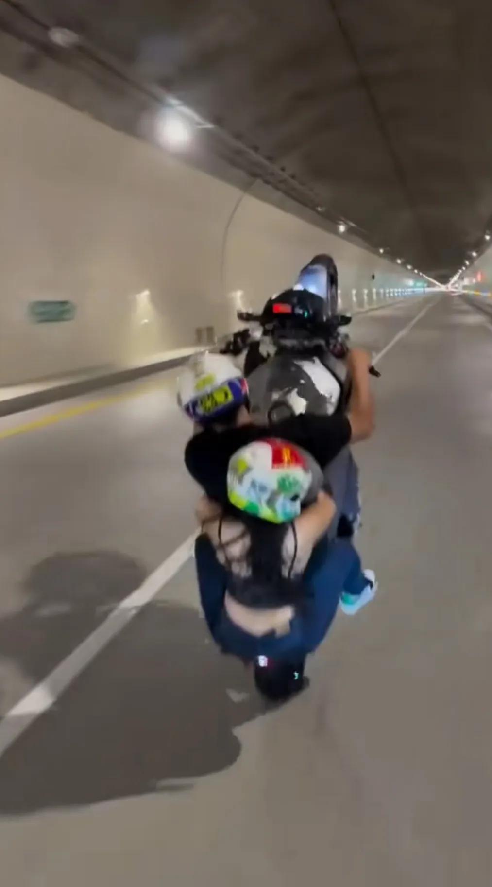 骑摩托车耍酷,摩托车头直立,一个轮子着地跑,一个敢骑,一个敢坐。 最佩服的是后面那个敢坐的女人。 这些人的心态是把生命当儿戏。
