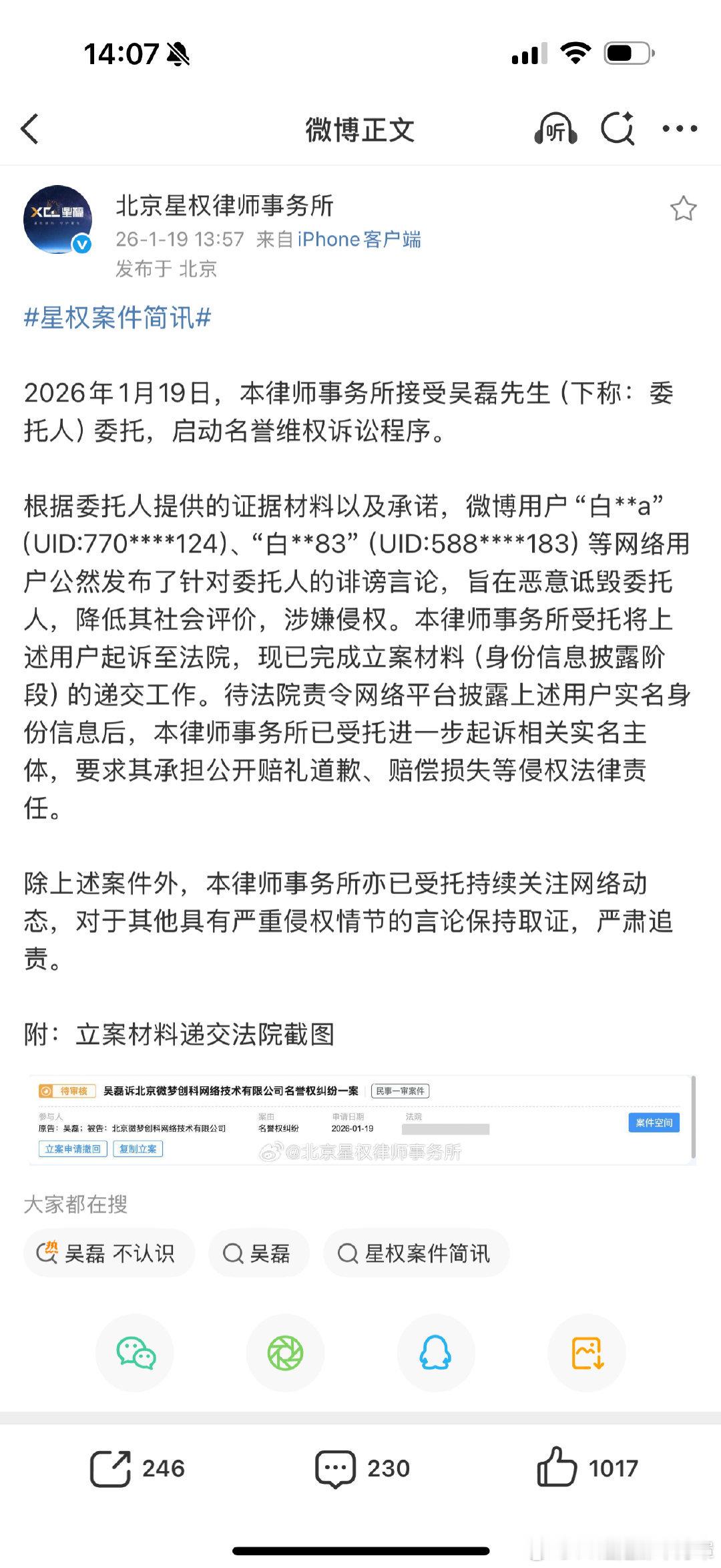 吴磊起诉白珊珊诽谤侵权起码目前看来像是老实人被逼急了