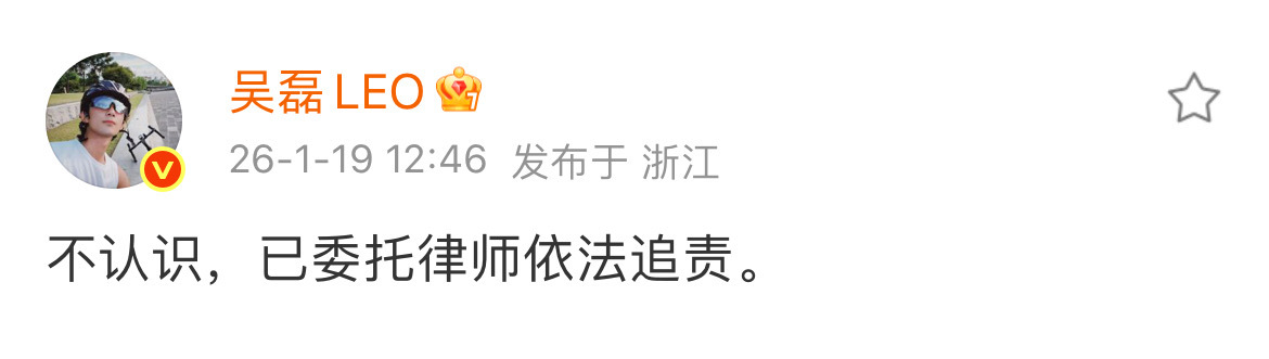 吴磊方依法追责造谣者本人发博了,直接了当“不认识,已委托律师依法追责”。造谣还是太简单了,每个人都得为自己的行为负责!支持合理维权!吴磊 不认识