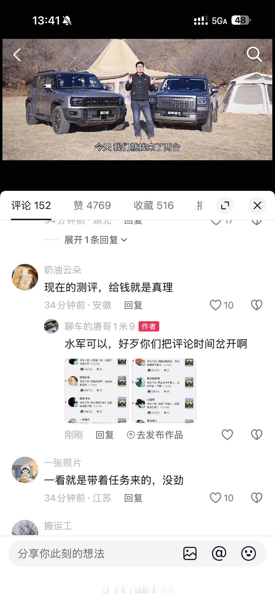 抖音那条对比的内容几乎同一时间(秒进)进来十条评论而且评论方向都是统一的“你收钱了,你胡说八道”谁给我花钱刷的评论谁玩水军那套懂?点头像进去一看19 岁,女,没作品, 2 粉丝笑了这就是证据!赓言赓语我与汽车的日常