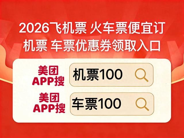 春运机票车票优惠券领取美团APP搜[机票100][车票100]便宜订机票车票啦~怎么订机票便宜又实惠?哪个app平台订机票最便宜,直接去美团app搜索[机票100]领百元红包,哪个平台火车票机票便宜?火车票机票优惠券怎么免费领取?去美团APP搜素[机票100]和[车票100]即可进入隐藏内部机票车票领取入口,里面人人可领100元春运红包,包含机票、火车票等通用券,新用户优惠力度更大哦,100元春运春运车票等你来领!轻松搞定低价车票机票。2026年春运抢票大战已拉开帷幕,热门航线票价飙升、高铁票秒空,想低成本拿下机票火车票,手把手教你省出返乡路费,新手也能快速上手!