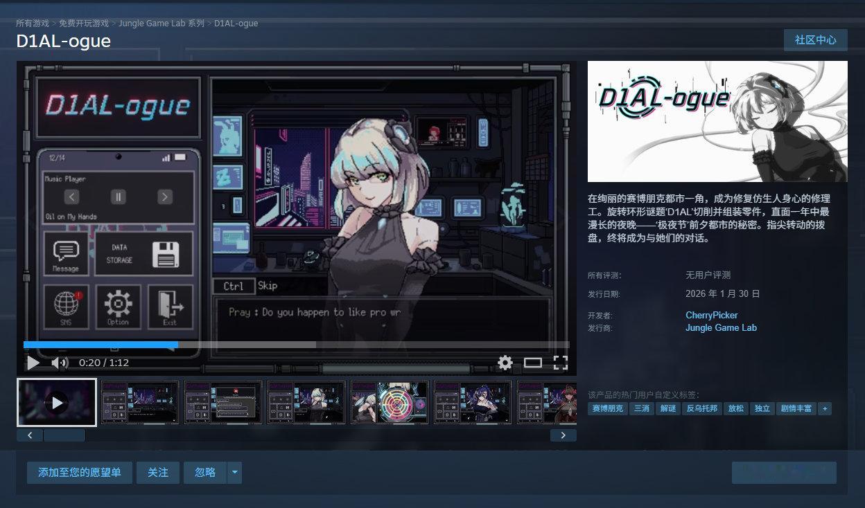 赛博朋克风格叙事解谜游戏《D1AL-ogue》将于1月30日在Steam平台免费推出,支持中文。在这个太阳不再升起、唯有人造光照亮街道的地方,玩家将扮演维修诊所的店长,迎接造访的客人们。她们并非普通人类,而是被称为“电子生命体(E.V.E)”的仿生人。你需要操作诊断控制台“D1AL”修复她们损坏的零件,并以此解开纠缠在核心深处的故事。