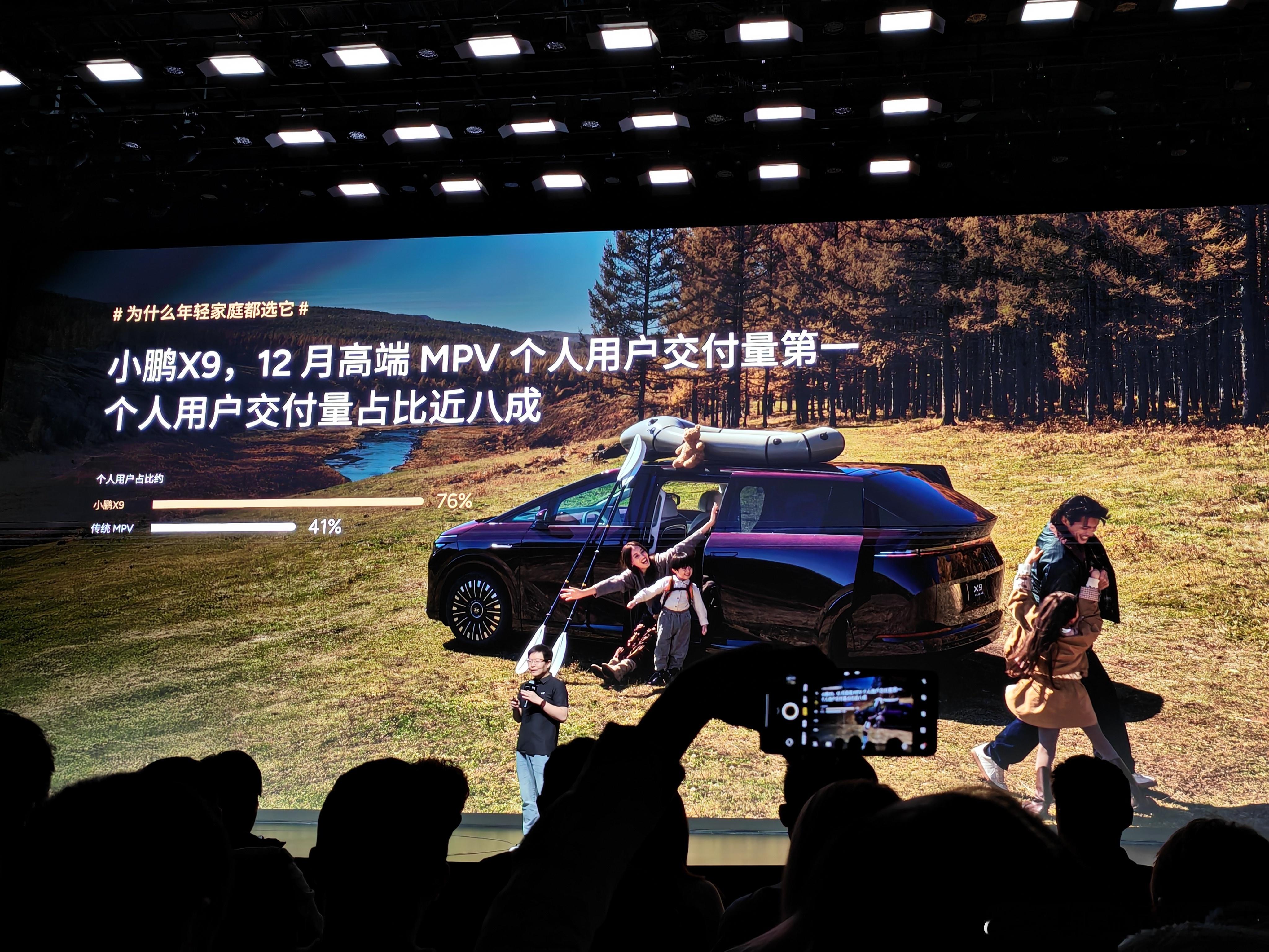 小鹏在 X9 超级增程分享会上分享了一些数据:–25 年 12 月份卖了 5424 台–是香港 25 年下半年的 MPV 销量冠军,也是印尼 25 年 12 月纯电 MPV 市场销冠–客群相对而言也会更年轻一些,女性车主、00 后车主占比都比行业平均数据更高–加上 70% 的用户都选择 Ultra 版本,X9 的年轻化、智能化以及后轮转向带来的便利性,算是同级 MPV 中比较亮眼的吧小鹏x9年轻家庭的第一台mpv小鹏x9