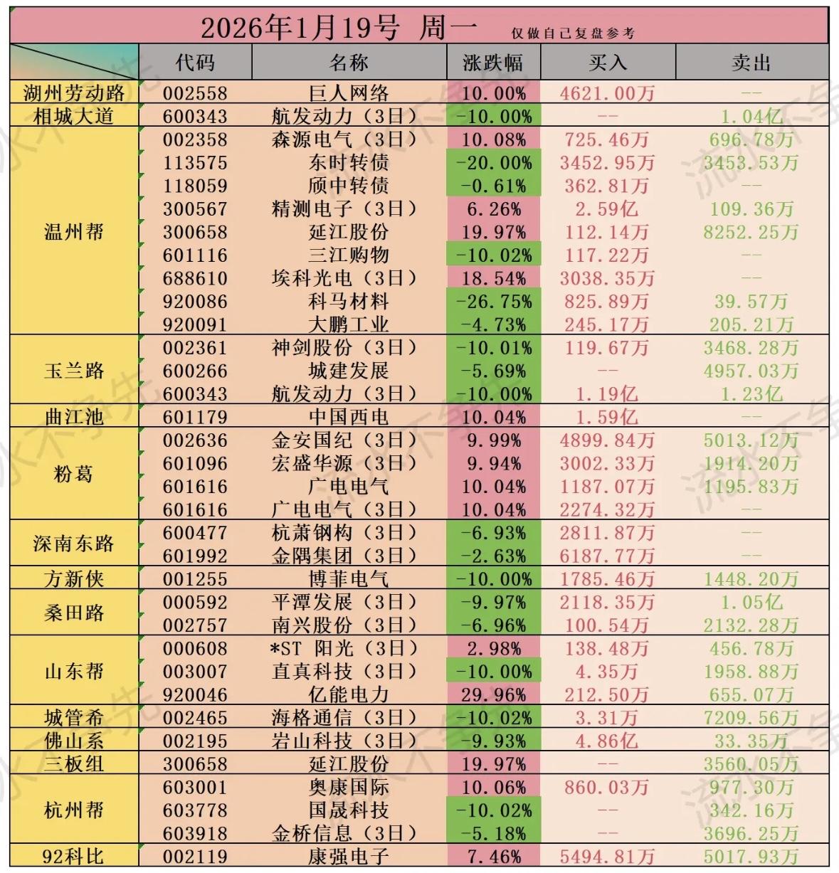 2026年1月19日柚子龙虎榜股票涨跌幅分析,助你精准投资! 股市复盘:多股涨