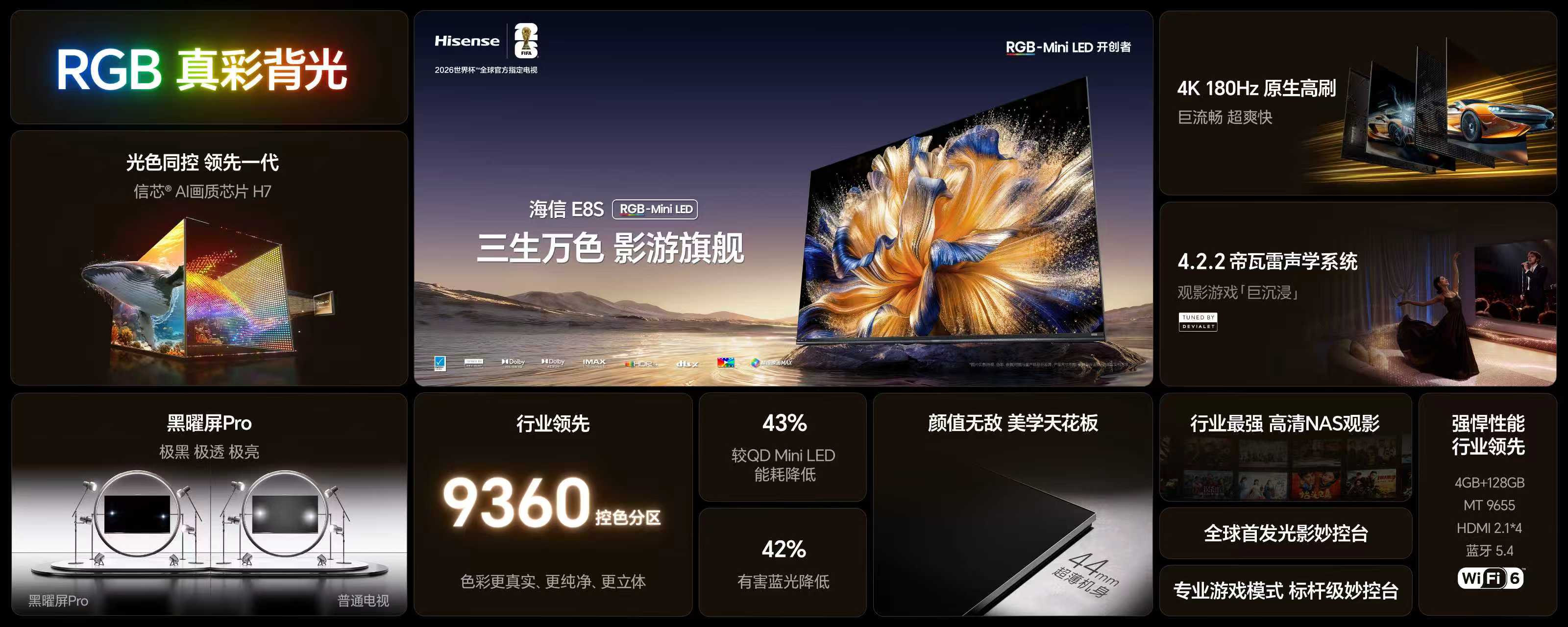 海信今晚发布的E8S旗舰电视,核心是RGB-Mini LED技术。告别了行业通用的蓝色单色背光,让红绿蓝三原色芯片直接发光,实现了从“控光”到“光色同控”的跨越,色彩更纯、能耗大降40%以上。 这不仅是一款产品,在高端OLED增长放缓之际,由中国企业主导的RGB-Mini LED正成为三星、索尼等全球巨头跟进的新赛道,标志着中国显示产业从“跟随”转向“引领”。 E8S将这项技术下放至万元价位(75英寸9999元起),直接冲击传统高端市场。这场“换代风暴”实质是用新一代技术,重新定义高端画质标准,试图开启新的市场格局。