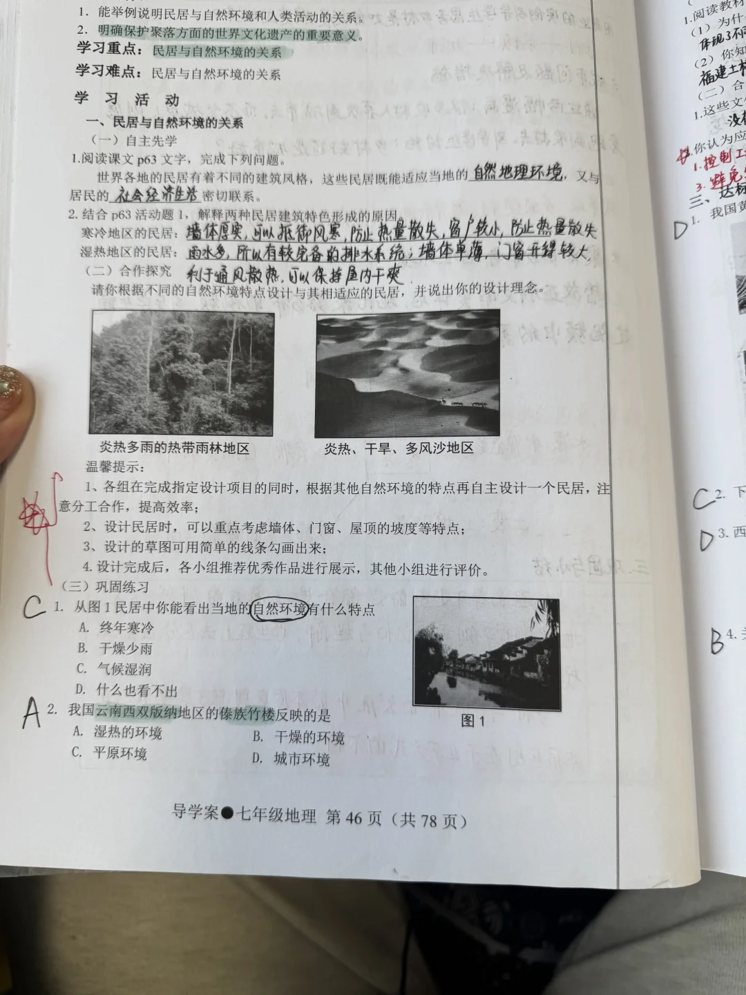 七年级湘教版备课笔记——世界的聚落