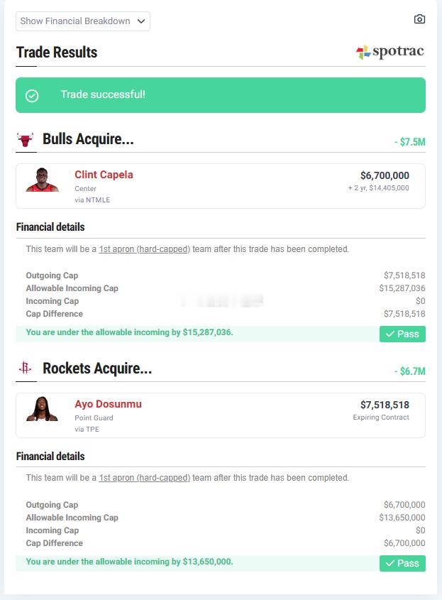 今天之前应该都至少是可以讨论的。今天之后没法聊了。你就说卡片到底该不该签吧...休斯顿火箭 或许稍作改动(图二),会不会还有的谈? 够呛,毕竟76人有老财迷掌权,还忙着避税呢估计...