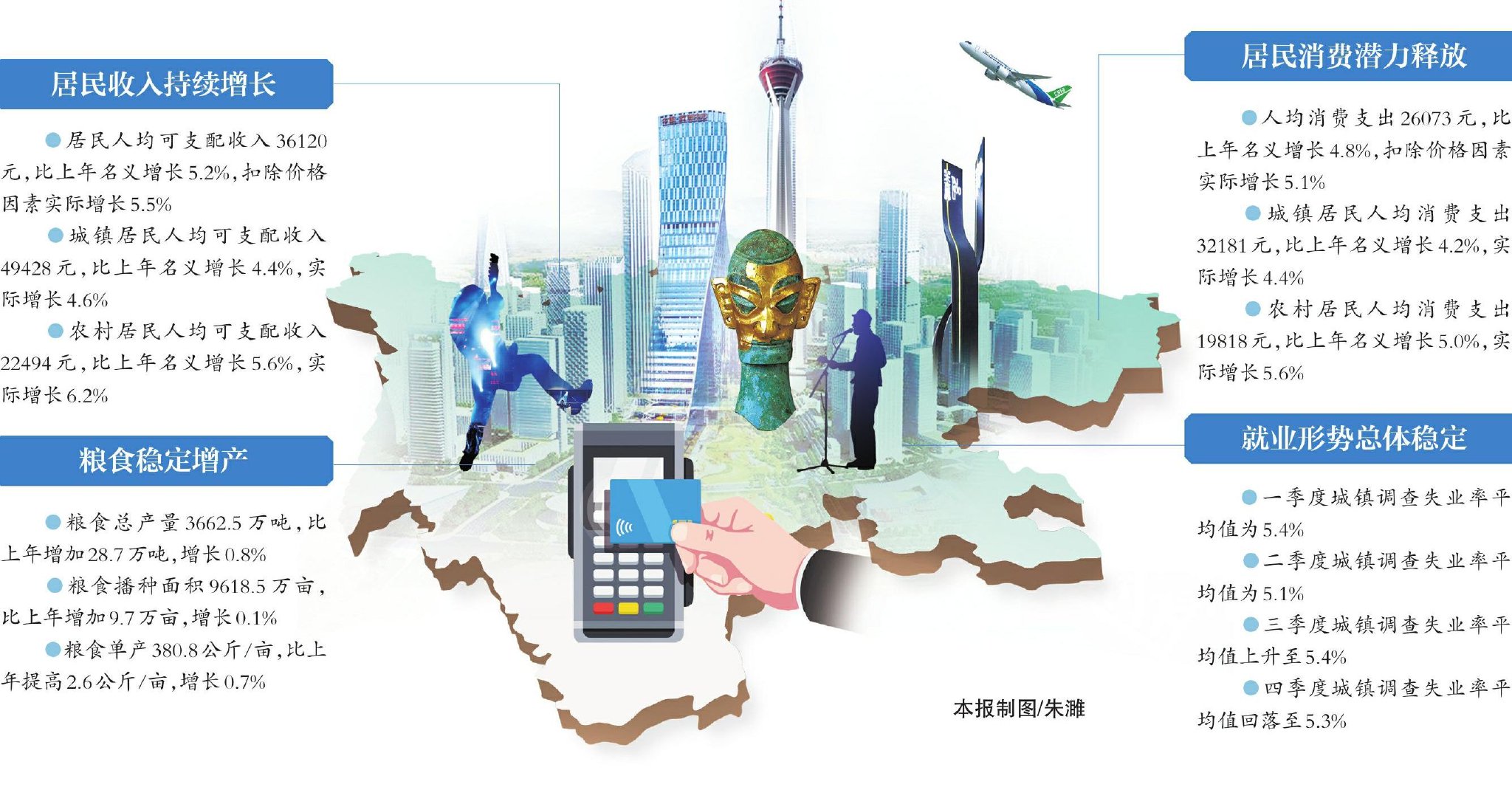 数据显示,2025年,全省居民人均可支配收入36120元,比上年名义增长5.2%,扣除价格因素实际增长5.5%;全省居民人均消费支出26073元,同比名义增长4.8%,扣除价格因素实际增长5.1%。国家统计局四川调查总队居民收支调查处处长石文格介绍,2025年四川居民消费呈现3个特点——
