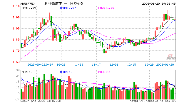 1月20日,科技50ETF(515750)开盘涨0.00%,报1.977元。科技50ETF(515750)重仓股方面,立讯精密开盘涨0.07%,阳光电源跌0.29%,亿纬锂能涨0.37%,歌尔股份涨0.13%,宁德时代涨0.32%,长川科技跌0.79%,烽火通信涨1.76%,寒武纪跌0.19%,领益智造跌0.32%,鹏鼎控股涨0.04%。