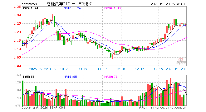 1月20日,智能汽车ETF(515250)开盘跌0.48%,报1.235元。智能汽车ETF(515250)重仓股方面,立讯精密开盘涨0.07%,芯原股份跌0.18%,拓普集团涨1.57%,豪威集团涨0.14%,科大讯飞涨0.74%,德赛西威涨0.24%,闻泰科技跌0.48%,欧菲光跌0.18%,均胜电子跌0.13%,思特威跌0.06%。