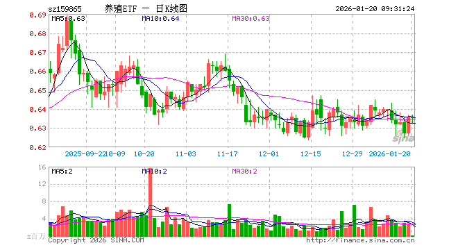 1月20日,养殖ETF(159865)开盘涨0.00%,报0.636元。养殖ETF(159865)重仓股方面,牧原股份开盘涨0.11%,温氏股份涨0.00%,海大集团跌0.13%,新希望跌0.11%,梅花生物涨0.19%,大北农涨0.00%,圣农发展涨0.12%,生物股份涨0.05%,天康生物跌0.28%,立华股份跌0.30%。