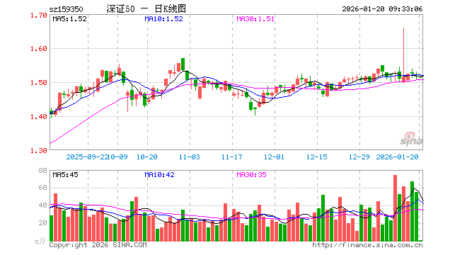 1月20日,深证50ETF富国(159350)开盘跌0.13%,报1.514元。深证50ETF富国(159350)重仓股方面,宁德时代开盘涨0.32%,美的集团涨0.05%,中际旭创涨0.00%,东方财富跌0.04%,新易盛跌0.41%,立讯精密涨0.07%,比亚迪涨0.03%,阳光电源跌0.29%,五粮液跌0.05%,北方华创跌0.55%。