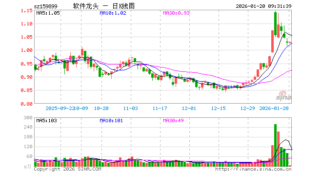 1月20日,软件龙头ETF(159899)开盘跌0.10%,报1.026元。软件龙头ETF(159899)重仓股方面,科大讯飞开盘涨0.74%,同花顺跌0.16%,金山办公涨0.87%,指南针跌0.82%,恒生电子涨1.00%,润和软件涨0.00%,三六零涨0.79%,拓维信息涨0.24%,用友网络涨1.28%。
