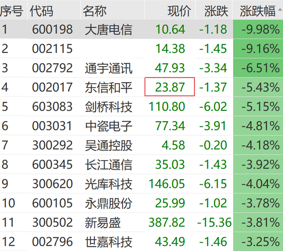 1月20日上午,通信板块震荡走低。大唐电信盘中触及跌停,三维通信、东信和平、剑桥科技等多股大跌。