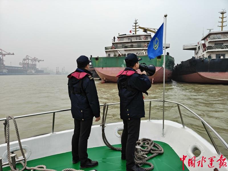 在辖区芦席洲锚地,海事执法人员对锚地内重载船舶逐一登轮,进行面对面的安全宣传,提醒各船舶锚泊期间要留足值班人员,要加强主机、辅机、锚等关键性设备的检查,确保处于良好可用状态。随后,执法人员通过现场喇叭喊话的方式强调此次寒潮大风天气的严峻性,提醒各锚泊船舶寒潮大风天气应加强值班值守,及时检查船舶的锚泊状态,尽量抛双锚,下尾锚,防止走锚事故发生。同时,执法人员提醒各船舶港内严禁私放自备艇,如需上下岸应乘坐正规交通艇。最后,执法人员通过甚高频持续发布安全提示,提醒辖区所有上下水船舶要密切关注天气变化情况,如遇江面风力无法安全航行时,应主动选择安全水域锚泊避风,不得冒险航行。