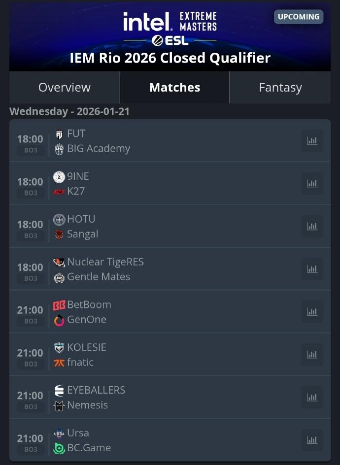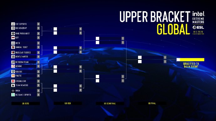 虎扑01月20日讯ESL公布了IEM里约全球封闭预选赛的对阵,预选赛将于1月21日开始,总计16支队伍通过双败Bo3争夺两个正赛席位。
