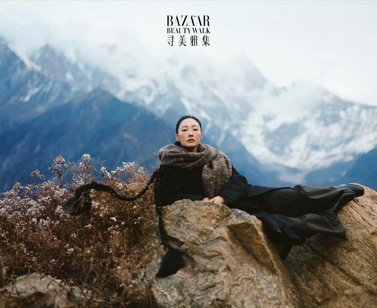 白百何身上的疗愈感 雪山草地间裹着针织围巾,眼神沉静温柔,这组大片太治愈,瞬间