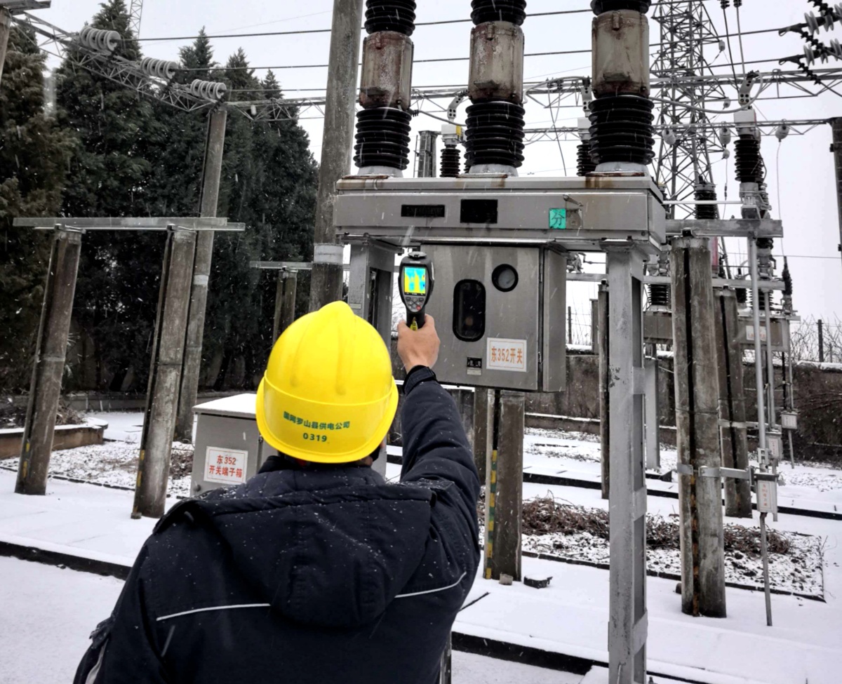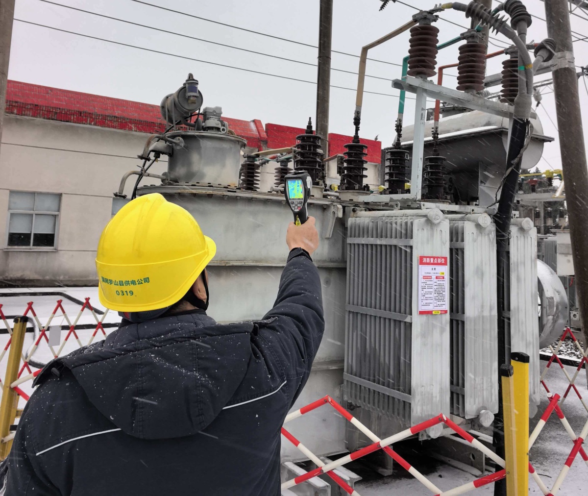 受持续强冷空气影响,罗山县境内气温骤降并伴有冻雨及强降雪。变电站是电网核心区域,其设备健康状态直接决定着供电质量与安全。此次极端寒潮天气直接影响着电网变电设备稳定运行。