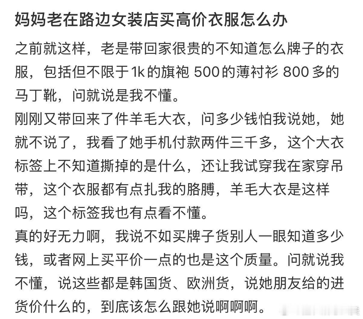 妈妈经常在路边的女装店买昂贵的衣服,我该如何应对?