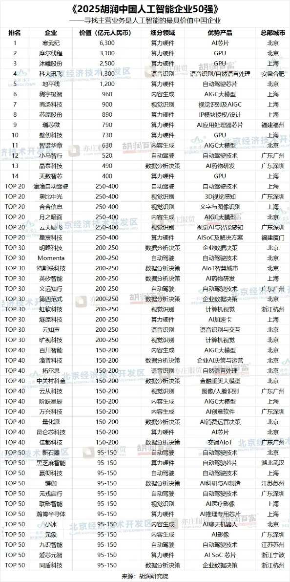 (万兴科技跻身“2025胡润中国人工智能企业50强”)