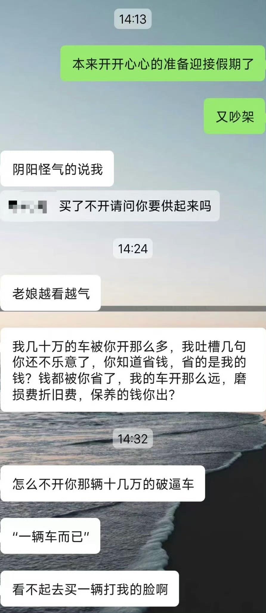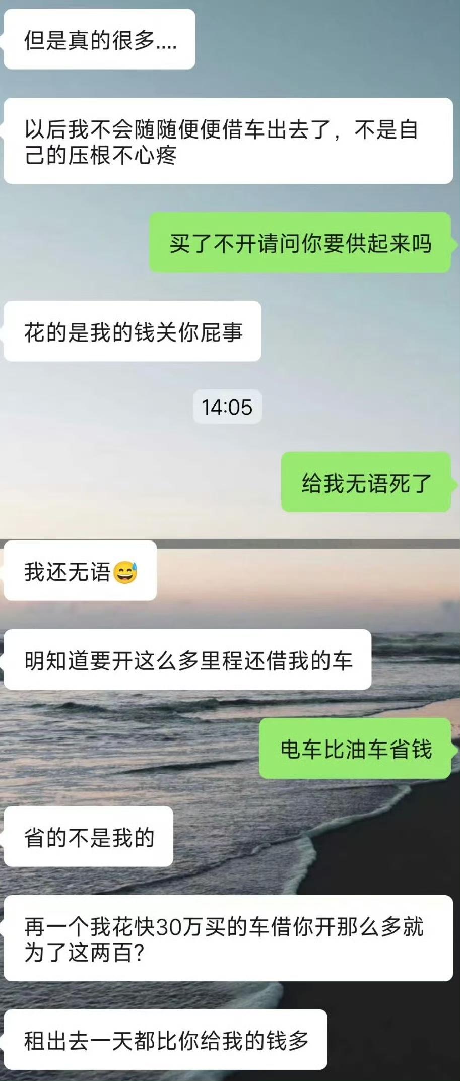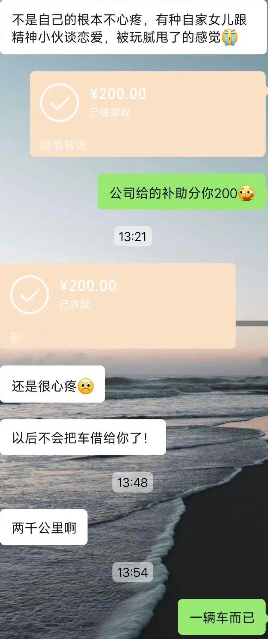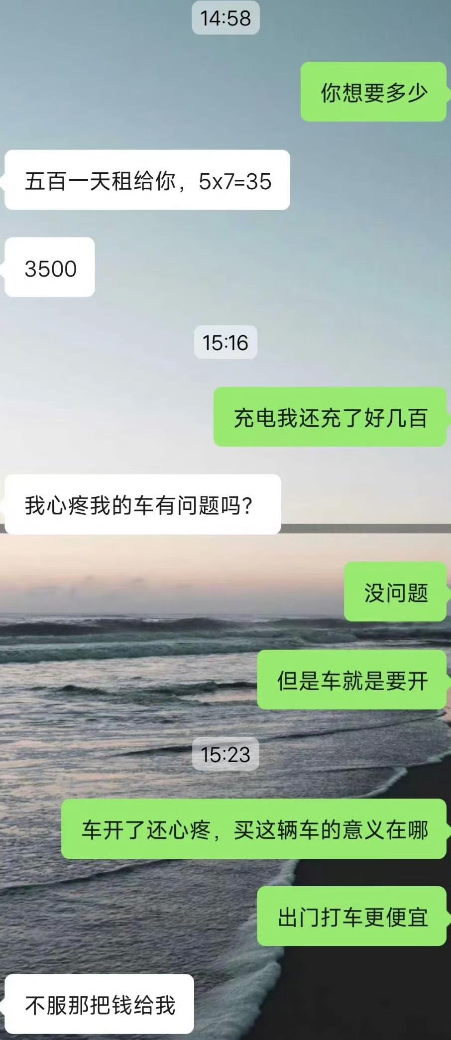 近日,一男网友求助,他想听听大伙的看法!他觉得车买来了就是拿来开的,如果不开还不如不买! 起因是这位男网友要出差,如果开油车公司会有补贴,但是油车费油,于是他就想到了女朋友半个月前刚买了一辆电车,就想着借女朋友的电车来开,结果出差一趟回来后,女朋友生气了,原本才跑了不到200公里的新车,如今一周时间就被他开了2000公里…. 车买来就是拿来开的,这点我是赞同的!但是你这算盘打的,自己开了新车面子上赚了,公司补贴也白嫖了,2000块的补贴却是一分都不想分,等女朋友生气了才给200….结果被女朋友说破防了,还给挂网上来了…. 回想起当初我刚提了新车的时候,那真是爱惜的不得了,有点灰都要赶紧擦擦….女方的心情是能够理解的!