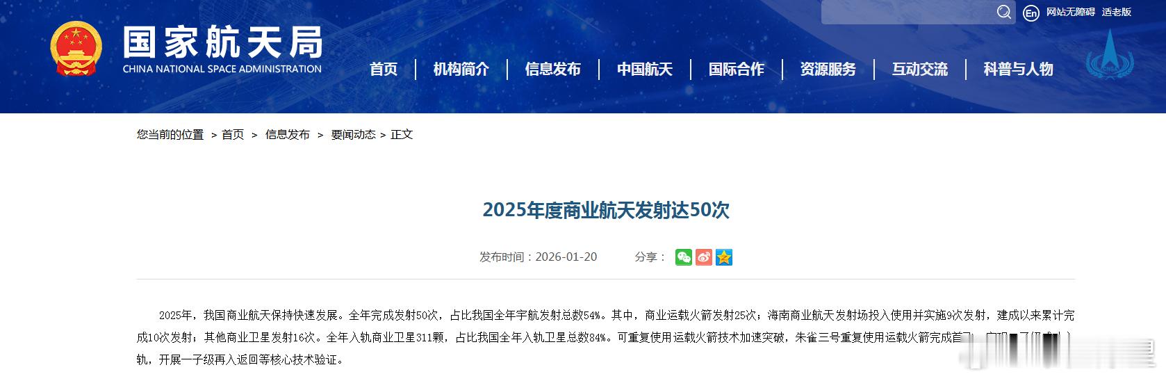 【国家航天局:可重复使用运载火箭技术加速突破】2025年商业航天全年完成发射50次 2025年,我国商业航天保持快速发展。全年完成发射50次,占比我国全年宇航发射总数54%。其中,商业运载火箭发射25次;海南商业航天发射场投入使用并实施9次发射,建成以来累计完成10次发射;其他商业卫星发射16次。全年入轨商业卫星311颗,占比我国全年入轨卫星总数84%。可重复使用运载火箭技术加速突破,朱雀三号重复使用运载火箭完成首飞,实现二子级成功入轨,开展一子级再入返回等核心技术验证。(国家航天局、财经网)网页链接