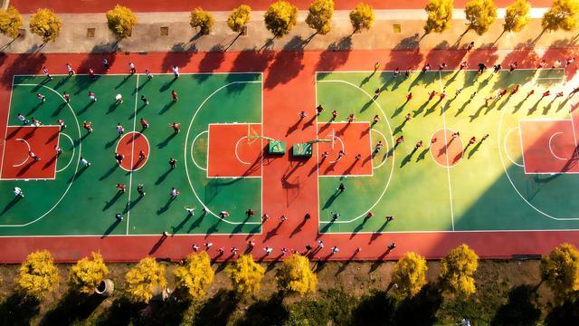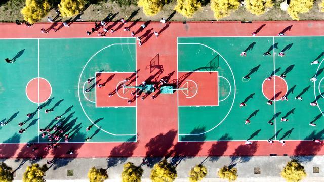 以上图片:2026年1月16日,在江西省吉安市遂川县博雅学校,学生在进行体育活动。(无人机照片)CICPHOTO/李建平摄