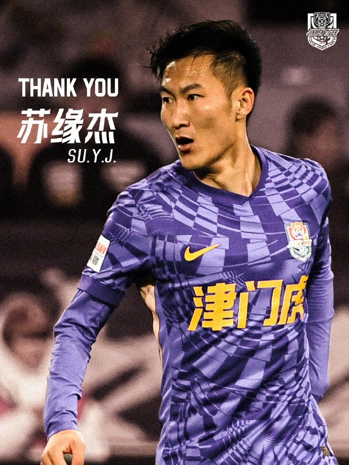 津门虎官方写道:121次出场,4粒进球,9次助攻。感谢苏缘杰对天津足球的付出与贡献!祝愿“大康”的职业生涯一帆风顺!