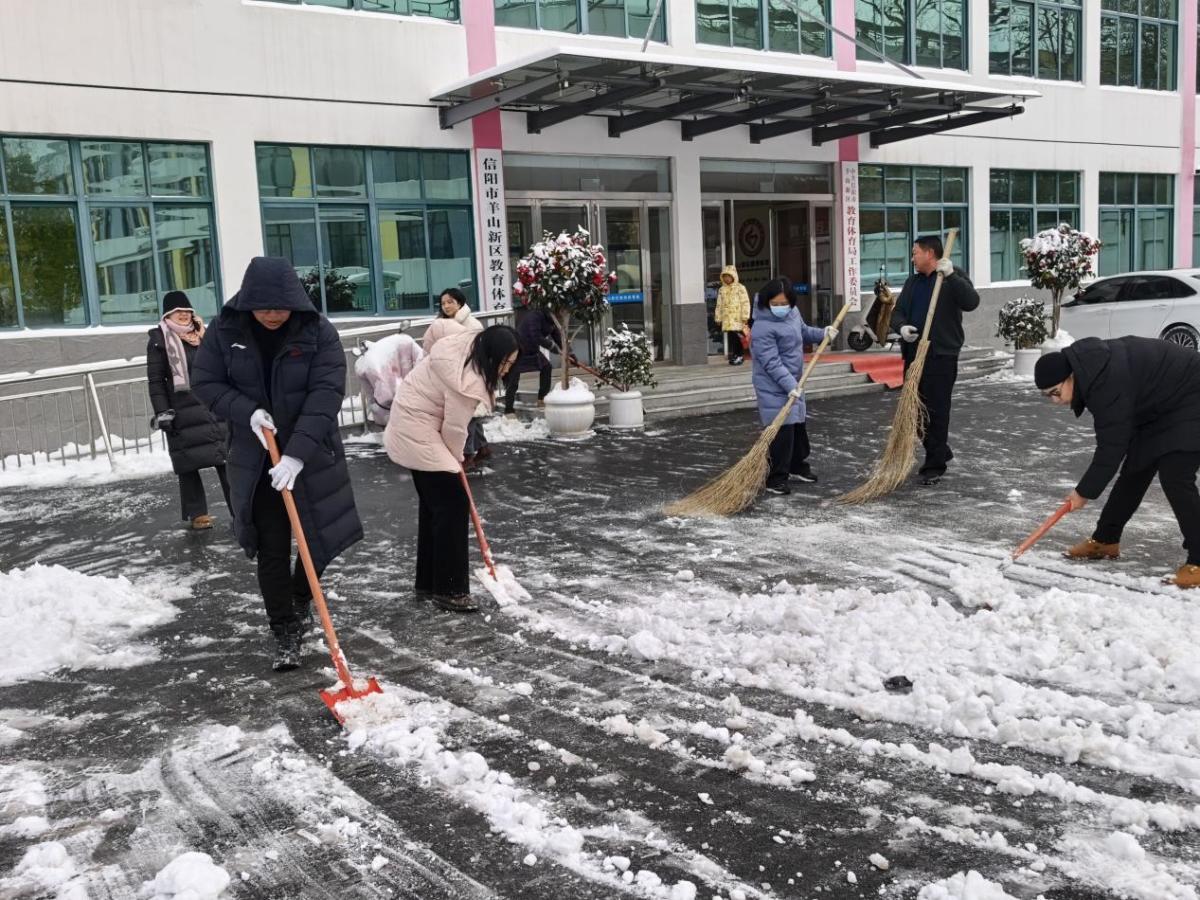 1月20日,冬日降雪导致道路积雪结冰,给师生出行及校园周边安全带来隐患。信阳市羊山新区教体局迅速响应、紧急部署,统筹机关及辖区中小学、幼儿园同步开展清雪除冰行动。