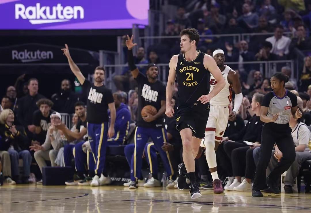 库里砍19+11巴特勒伤退 勇士轰24记三分大胜热火夺4连胜勇士NBA 北京时间1月20日,NBA常规赛,勇士主场以135-112大胜热火,这也令勇士夺得4连胜。勇士队波杰姆斯基24分6篮板4助攻、库里19分11助攻、巴特勒17分4助攻、希尔德16分、波斯特15分9篮板2盖帽、穆迪13分3抢断、霍福德10分8篮板;热火队鲍威尔21分、维金斯18分5篮板、韦尔15分、丰泰基奥13分8篮板、哈克斯10分5篮板9助攻。首节比赛,维金斯、鲍威尔和阿德巴约相继冲击篮筐;巴特勒连续篮下进攻打成,波斯特和库里连续篮下进攻打成,两队一路打成15平。米切尔和维金斯皆在外线开火,韦尔又不断的肆虐着篮筐;勇士多将连续冲击篮筐,霍福德又在篮下开火,巴特勒篮下强攻打三分,仍然助球队紧紧咬住比分。穆迪扔进三分,助勇士以36-34领先结束该节。次节比赛,两队在开局阶段持续胶着,一路打成43平。鲍威尔和阿德巴约连续冲击篮筐;穆迪则在内外的投射皆有声有色,双方又一路僵持到52平。希尔德远投得手,随即库里爆发连进两记三分,波斯特同样在外线开火,勇士在外线爆发,以70-66领先结束半场。第三节比赛,两队开局依然胶着,勇士以77-75的微弱优势领先。但在这个节骨眼上,巴特勒在争抢篮板的时候不慎伤到右膝,他也无法坚持比赛,不得不退出了这场比赛。勇士则并没有受此意外事故的影响。波杰姆斯基、库里、波斯特、希尔德和霍福德相继命中三分球,勇士全队集体三分爆发,勇士克服了不利局面,以104-93领先结束该节。末节比赛,穆迪和库里继续命中三分,随后希尔德又连突带投连连抢分,助勇士以119-103继续拉开场上比分。波杰姆斯基又连进两记三分,助勇士将分差拉大到20分以上,接下来的比赛再无悬念,勇士牢牢的保持着自身的优势,如愿赢得比赛。首发阵容勇士:理查德、巴特勒、波斯特、穆迪、库里热火:拉松、维金斯、阿德巴约、鲍威尔、米切尔