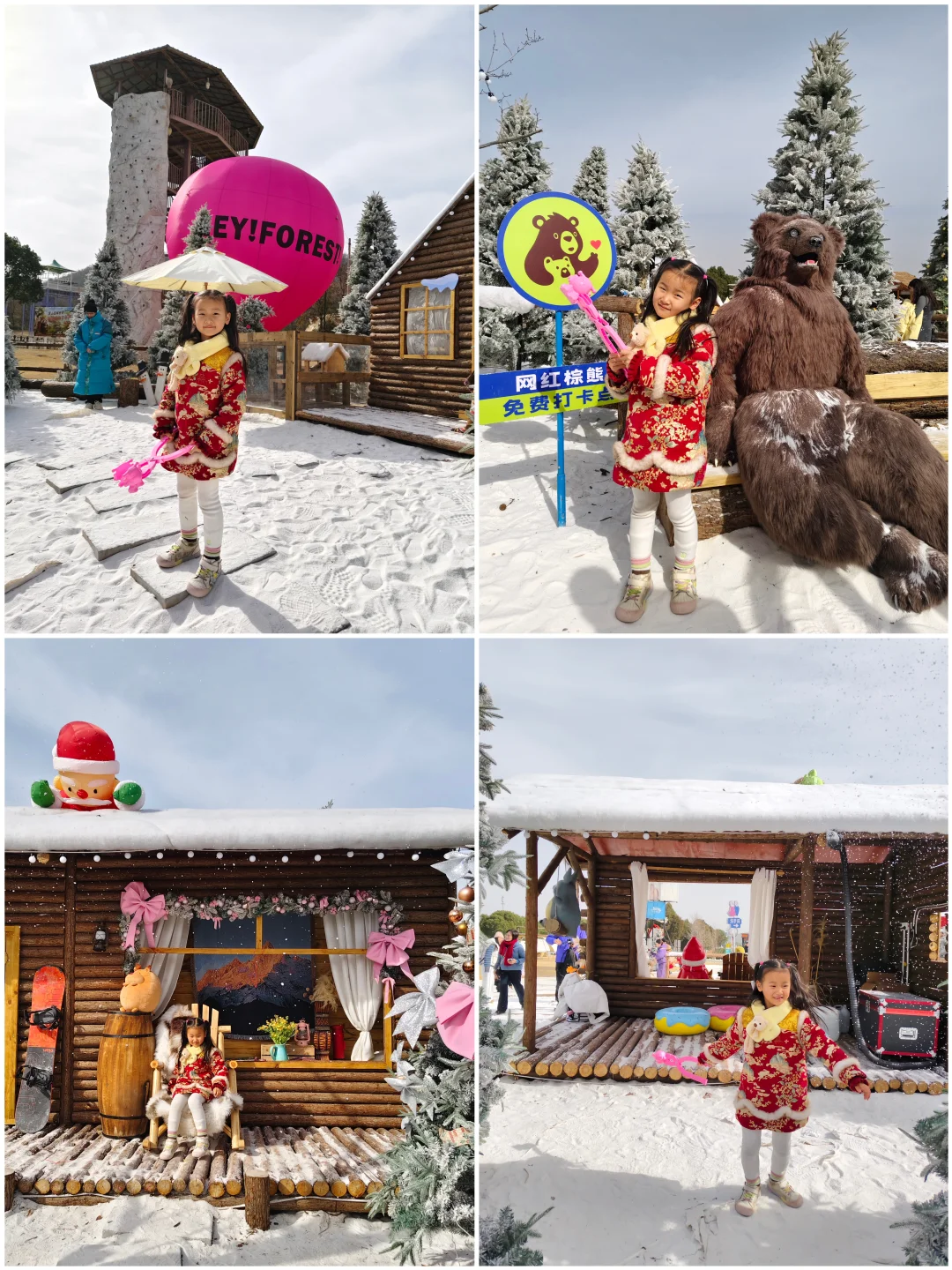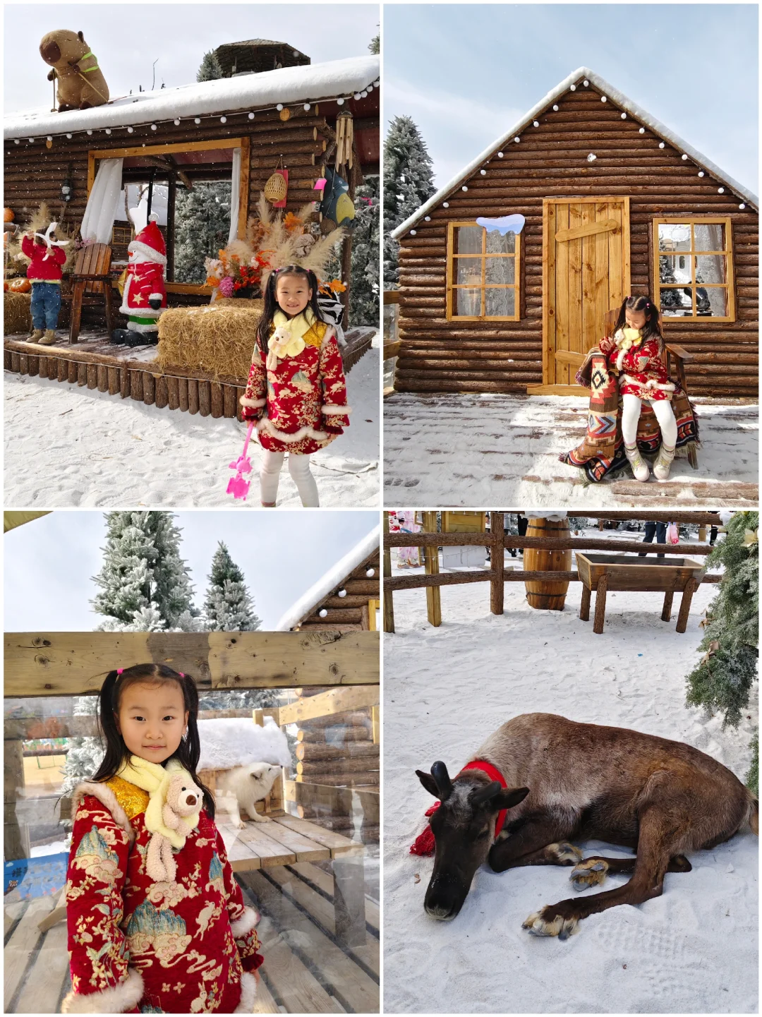 ✔️冰雪阿勒泰:可以与驯鹿、雪狐互动,千平雪松林很有冬日氛围哦,不定时有❄️喷洒,氛围感拉满~旋转木马、棕熊、童话角秋千拍照绝了,真的像置身阿勒泰🥰。