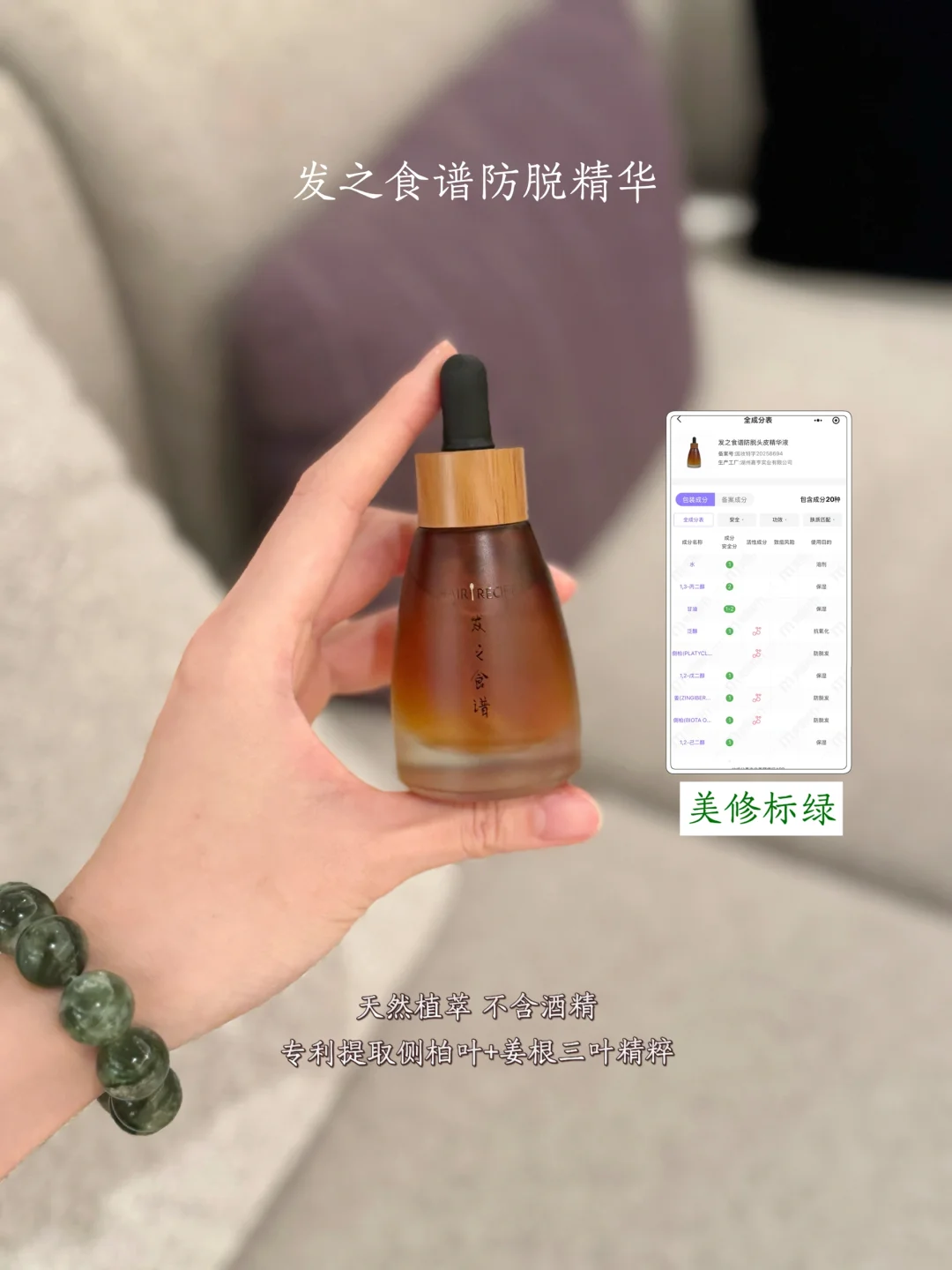 我的神仙婆婆给我备了发之食谱防脱精华,说是给我的头发充充电。长辈看中它有防脱特证,我看中它美修一片绿没有酒精,我才敢在产后尝试。