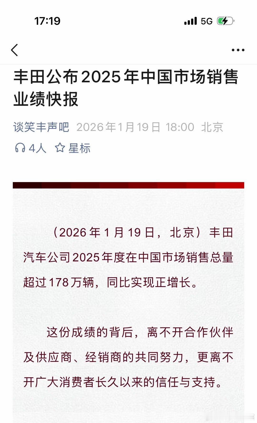 这样的大环境下,连续正增长的威力不可小觑丰田中国2025年销量为178万辆,同比微增;雷克萨斯2025在中国的销量是18万+,也是同比微增。不要小看微增,微增背后有大变化:雷克萨斯稳坐豪华车销量TOP10,而且是进口豪华品牌唯一正增长的;2025年在中国最畅销的丰田车是凯美瑞、荣放、卡罗拉和锋兰达,但是,但是,亚洲龙是增幅最大的车型;还有还有,智能电混双擎的销量占一汽丰田近一半等等。