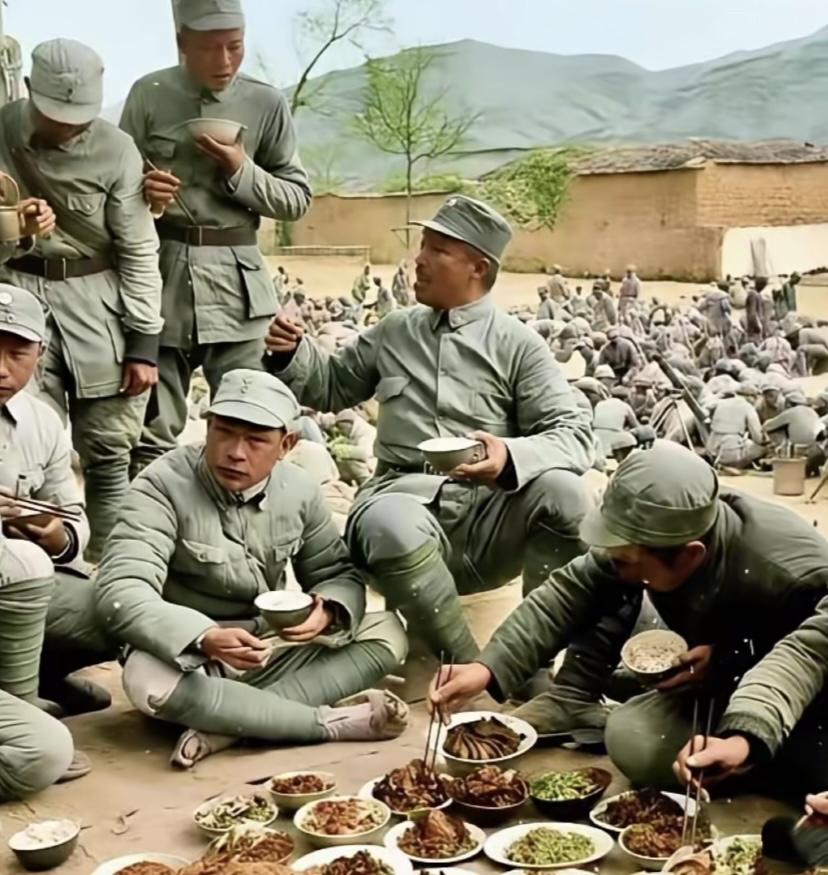 打了大胜仗,贺老总与将士们席地而坐,美美的吃了一顿,当时能搞到这么丰盛的菜,也是不容易了!这些菜一看纯天然,隔着屏幕就流口水!