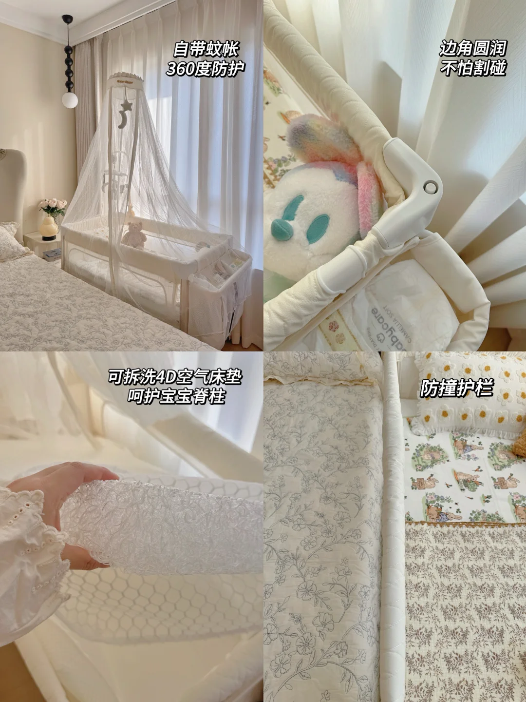 它=拼接床+摇篮床+独立床+游戏床+尿布台... 一床N用,直接从小用到大!! 自带静音万向轮🛞哪里需要就往哪里推 贼拉方便 装上摇摆杆 秒变哄睡摇篮床 妥妥解放双手哄娃睡觉太好使了 四档高度调节+侧护栏延伸版 轻松实现和大床无缝拼接~ 等宝宝大一点还可以切换游戏床模式 床的底部有7个支撑点 娃在里面蹦蹦跳跳也不会摇晃! 有娃家庭早买早享福啊!!