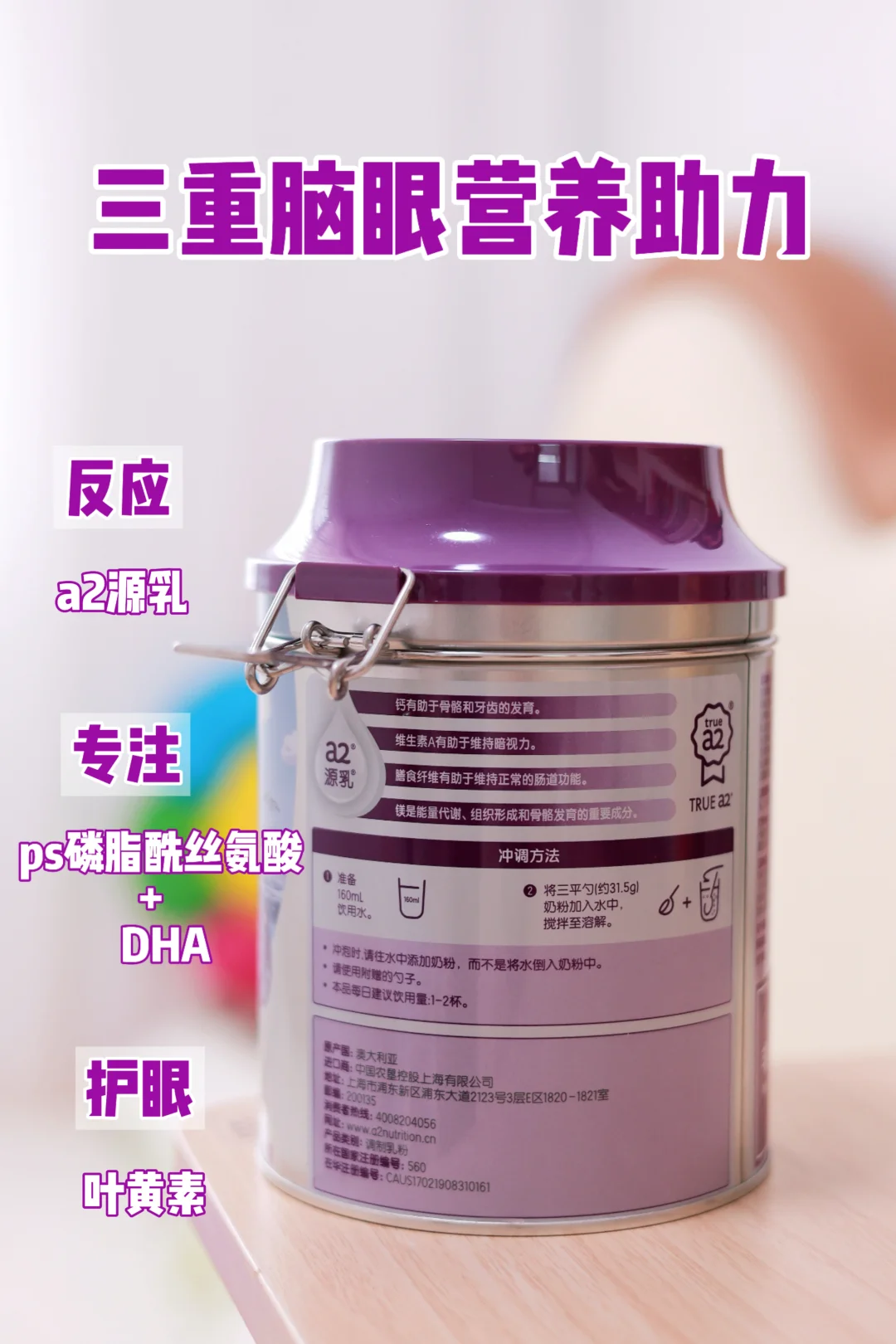 另外,它也添加了PS磷脂酰丝氨酸+DHA+叶黄素+a2源乳