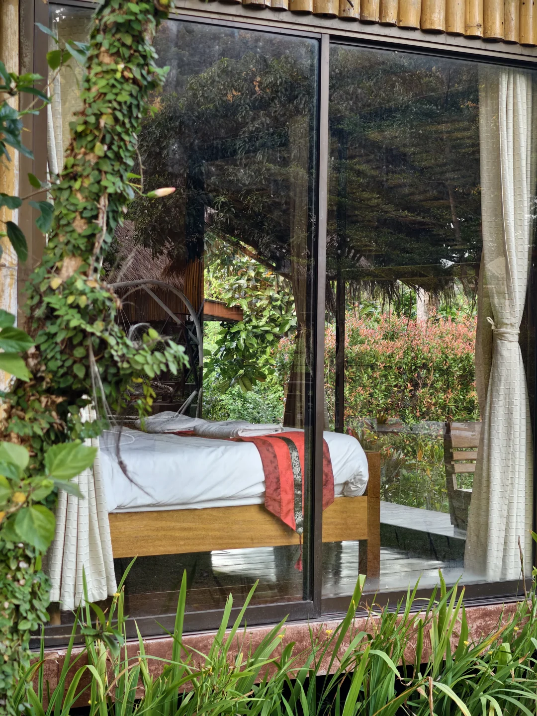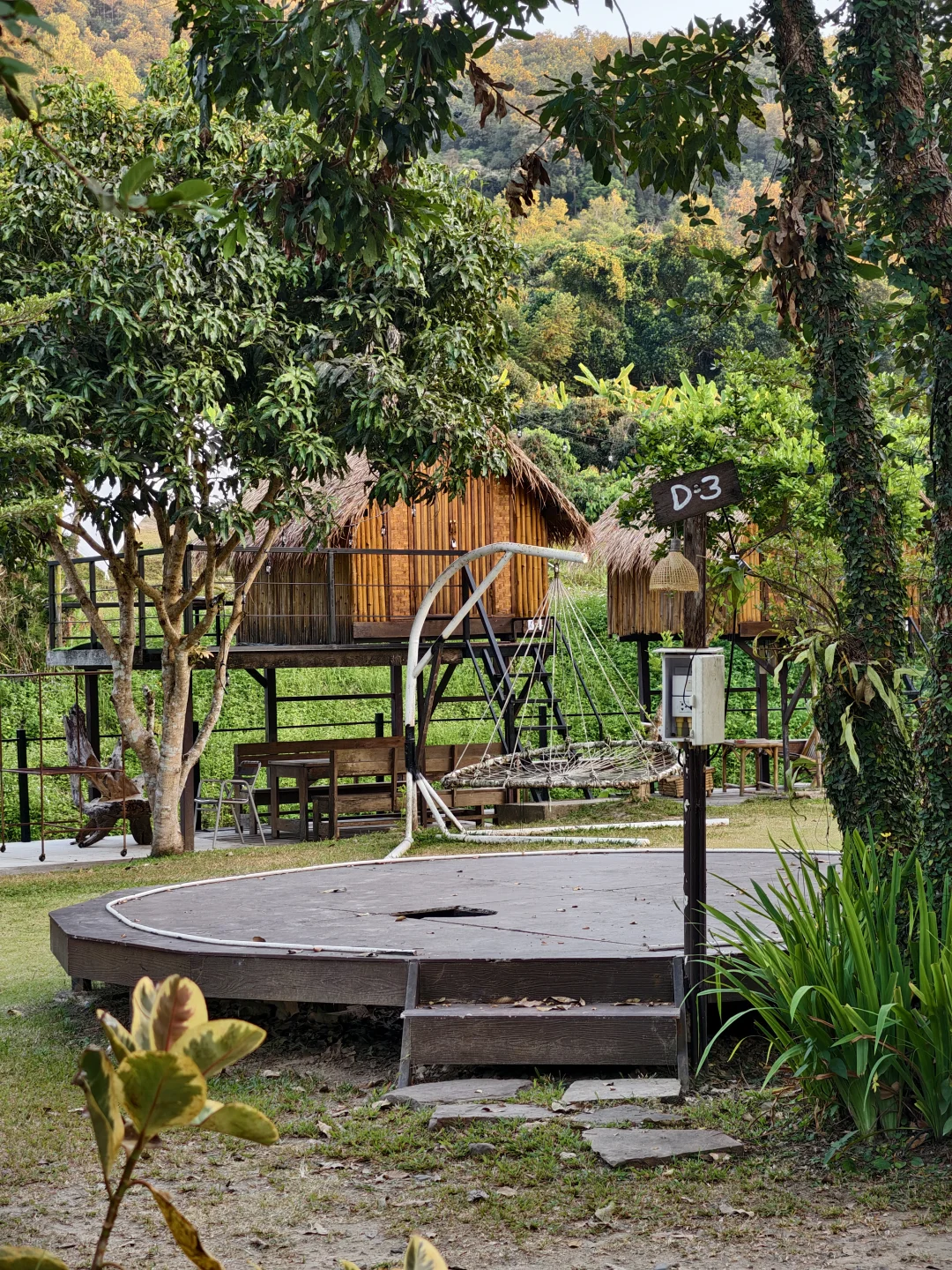 - 住宿环境超有feel:有两室一厅的家庭房,一家人住超宽敞;还有竹屋、带独立露台的小屋,周围全是绿树、小河和果树,住在这儿就像住进了大自然里,大人也能跟着放松下来~