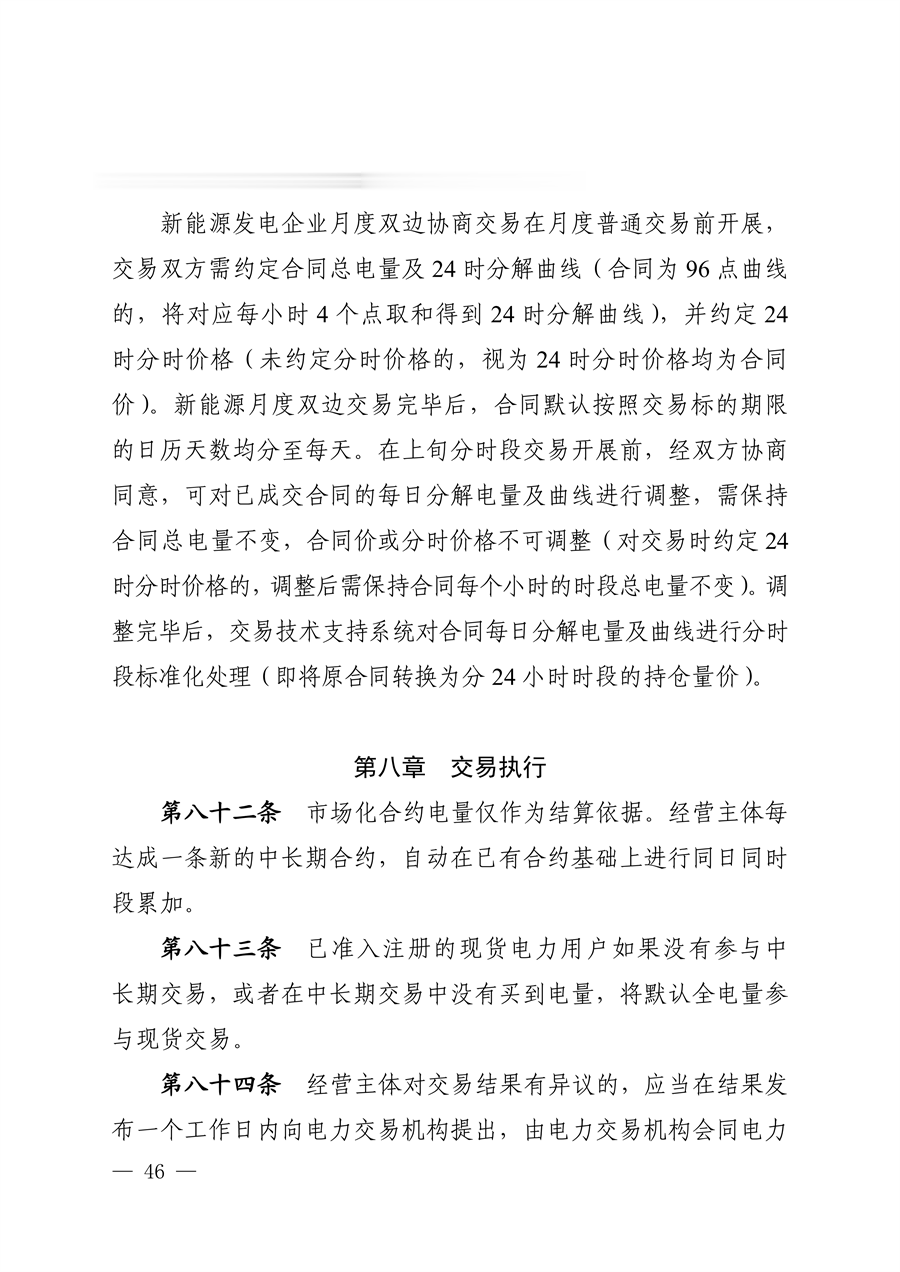 现货模式下,经营主体所有直接交易合同均须约定曲线并标明全天各时刻的价格,且所标价格不低于0元/兆瓦时、不高于山西省现货出清最高限价。考虑到新能源发电的波动性,新能源双边交易合同的交易双方协商一致后可在规定时间调整交易执行日的分时段合同电量,但需满足合同期内各分时段的合同总量不变。