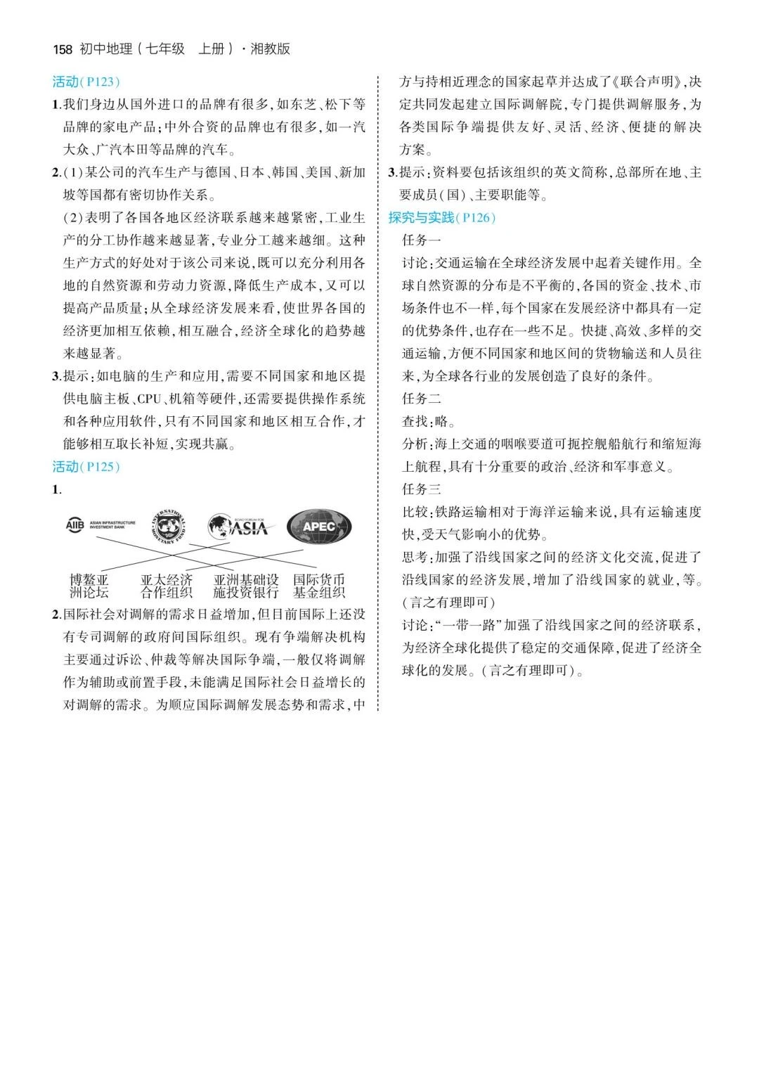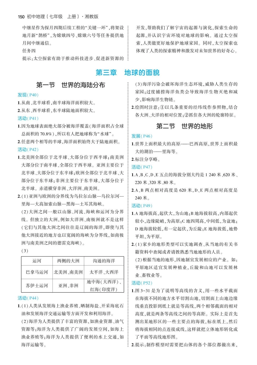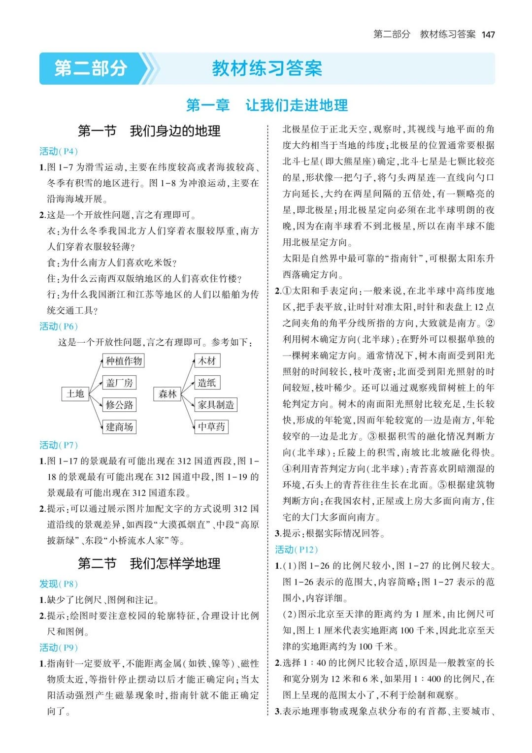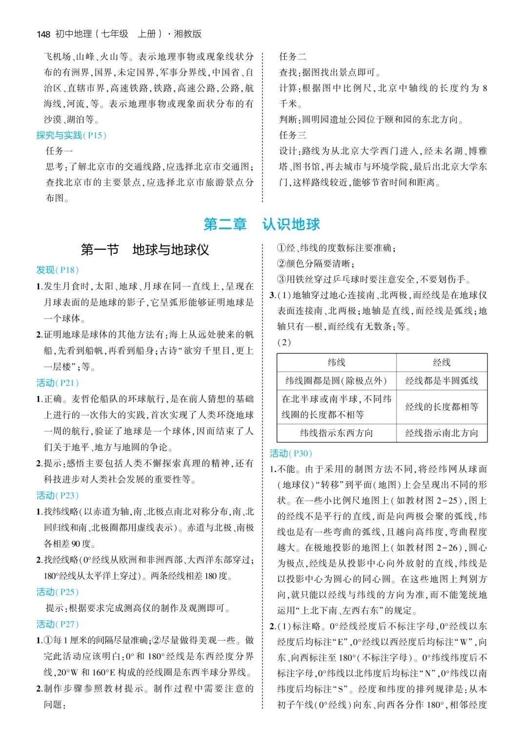最新版本的湘教版初中地理答案,有需要的可以保存收藏!